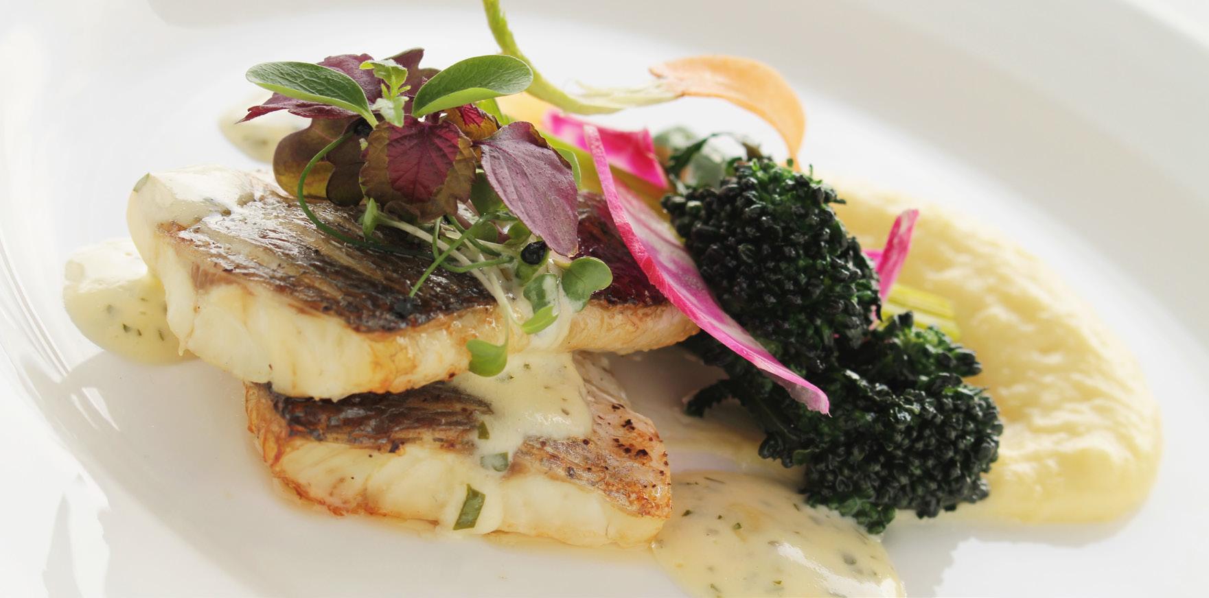 Flaky, tender salmon fillet seared to a golden crust, basted in herbed butter, and finished with a touch of fresh lemon for a clean, vibrant finish .