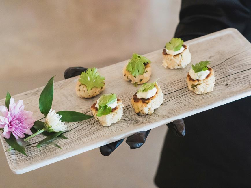 With your choice of ranch or honey mustard dipping sauce . Mini Crab Cakes