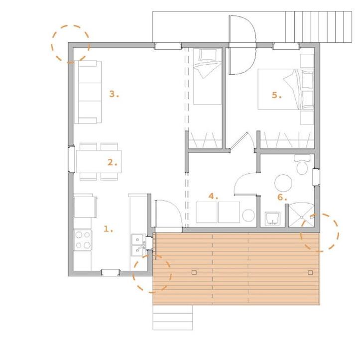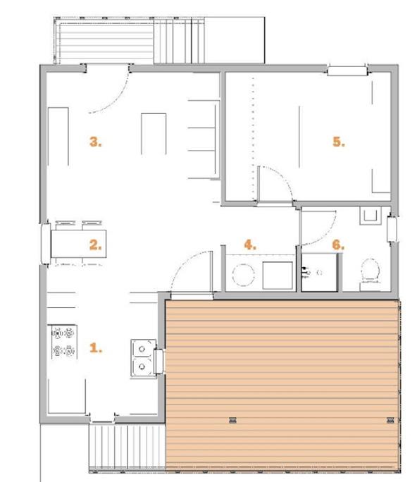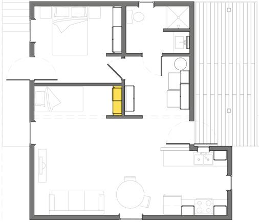 with Ms. Ophelia and found that her preference for sleeping in the living room necessitated a new design called the “quarter bedroom.” This quarter bedroom is essentially a nook built into the living room that provides privacy for Ophelia, but also allows her to maintain her current lifestyle.