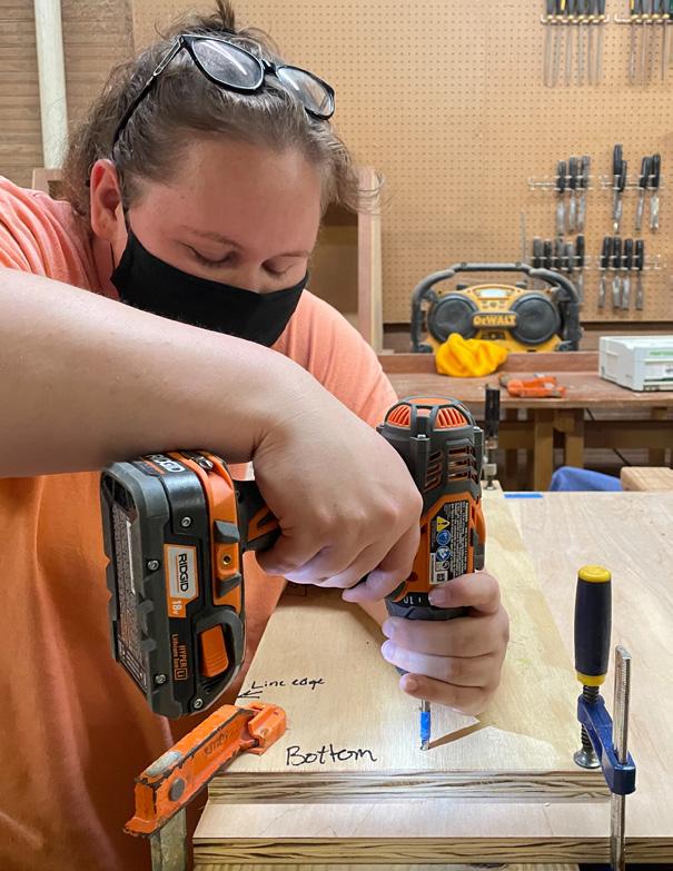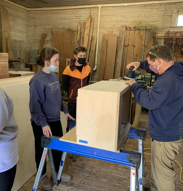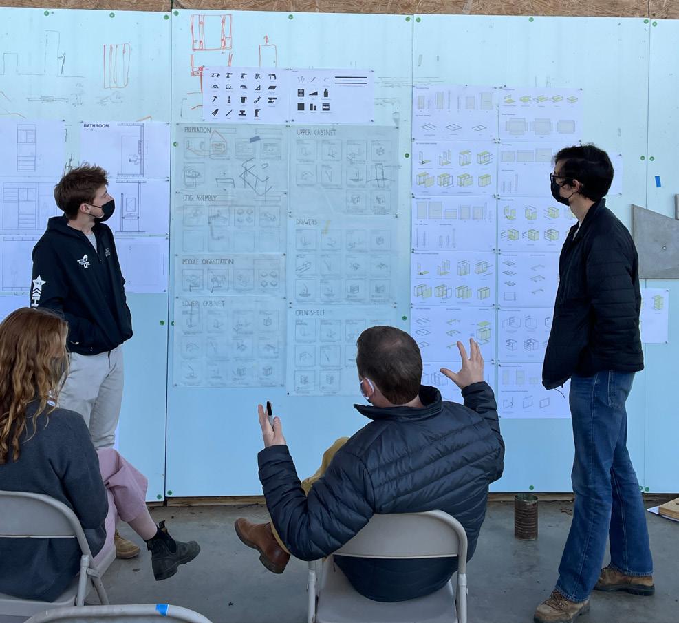 the iteration of cabinetry for Ms. Ophelia’s Home. Each team created a very customized design for each designated room. After running budget calculations, they theorized that the challenge was feasible. There was a possibility that we could build highquality cabinets for less than what could be purchased from Lowe’s or Ikea. After this discovery, the team experimented with the idea of using a CNC router and integrated handles. Even though they were interrupted by the pandemic, this team was able to produce a mock-up of their design and a preliminary manual for the budget and construction.