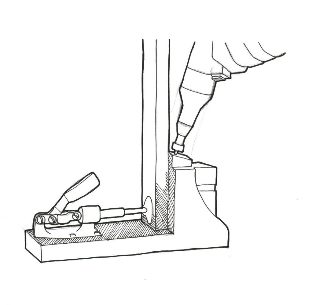 clamping, never clamp directly onto the finished Find pieces to place in between clamp and cabinet piece. This will prevent the clamp from leaving an indention on the finished surface.