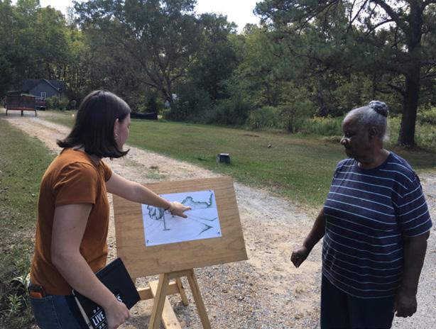 Anna Claire showing Ms. Ophelia schematic design sketches.