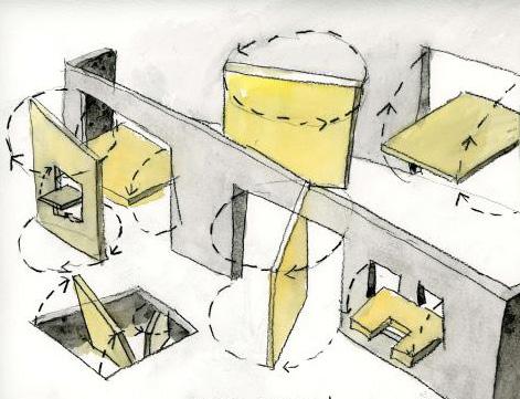 Housing in Fukuoka, Japan, uses analog transformative mechanisms to customize apartment spaces and to finely tune standardized spaces to the individual occupying the space. The rooms of the apartment interlock in various arrangements like a Chinese puzzle.10 Similar to the variety of chairs in Harvard Yard, Holl uses a variety of transformative walls that provide choice for the occupant living and operating within the space. These walls come in three different variations and could be adjusted differently, allowing each apartment to be completely customizable by the owner. 11