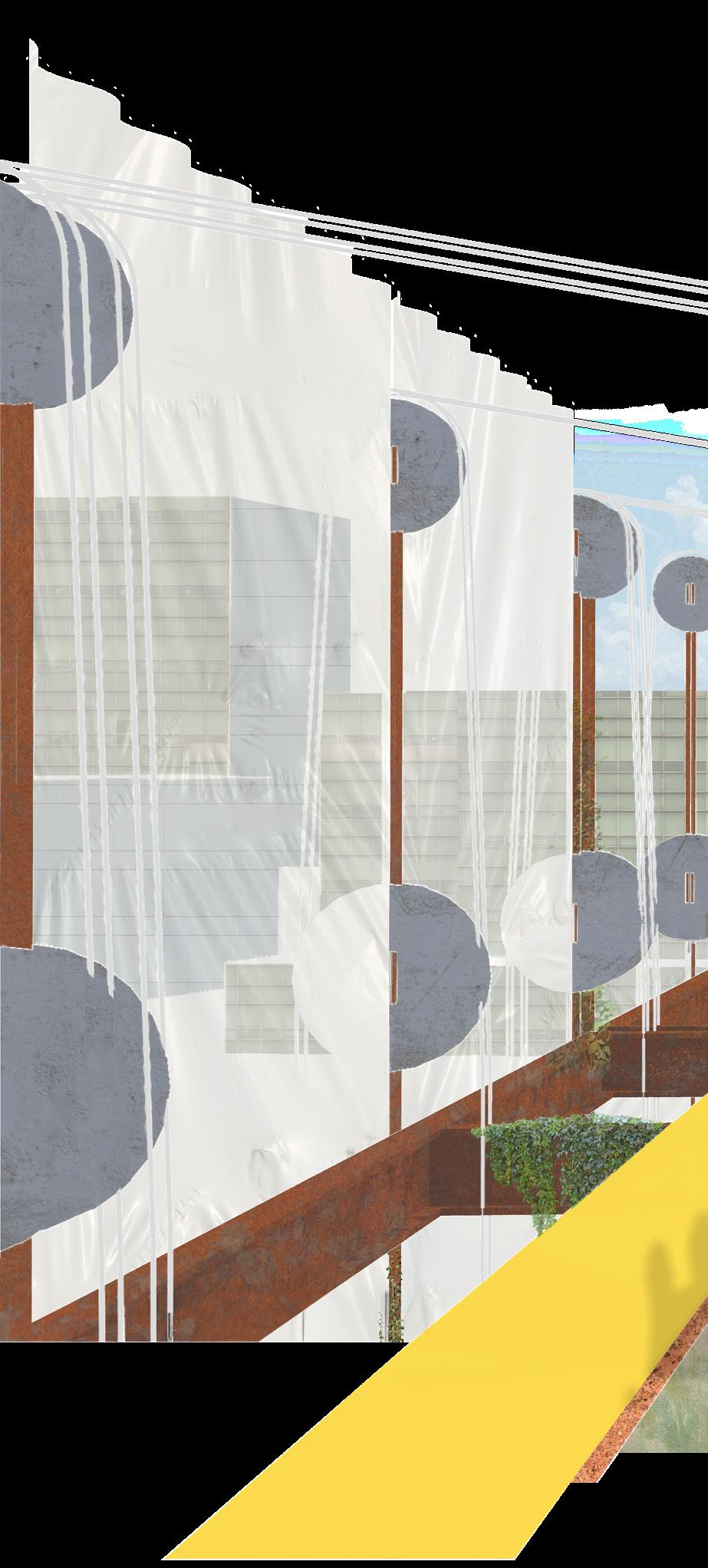 physiological result as the red steel gate at the entrance of the school. Rather than play being a separate moment only reserved for special occasions such as recess or field day, play becomes an integral part of how the child interacts with the school and becomes a large source of inspiration for learning and forming new ideas. The fact that the entry condition of each prominent area of the school is met with an analog transformative mechanism could be Miralles’s way of saying that in order to learn and interact with the world as creative participants we must first start with play.