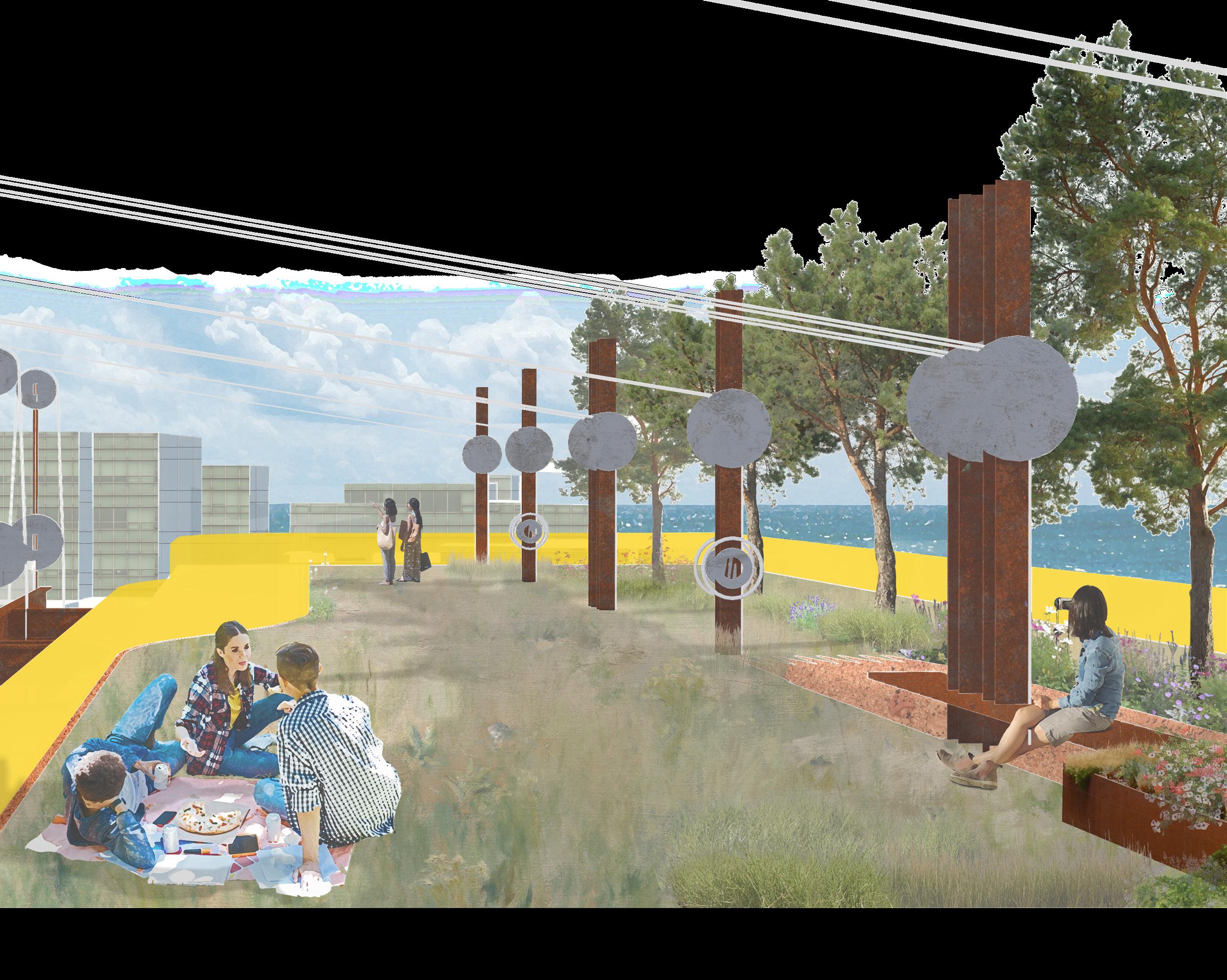 By using analog transformative mechanisms to bring attention to the iconic views out from the Howard Terminal and onto the cityscape of Oakland, visitors will have a greater sense of place and will feel almost like they are walking in downtown Oakland, therefore bringing the city to the park.