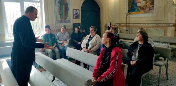 Iryna aus Konotop war getauft, war aber nicht gläubig gewesen. Sie berichtet: „Als Panikattacken mir buchstäblich die letzten Kräfte raubten, fand ich Trost in der Kirche. Im Februar 2022 war Angst in mein Leben getreten. Da waren feindliche Panzer in der Nachbarstraße, Beschuss, ein kalter Keller, in dem wir uns mit den Kindern versteckten. Damals betete ich zum ersten Mal aufrichtig.“ Bald darauf wurde bei ihr Krebs diagnostiziert: „Ich bat Gott nur um eines: mir dabei zu helfen, meine Kinder zu beschützen. Und dann schlug eine Rakete in der Nähe unseres Hauses ein, und wir wurden auf wundersame Weise gerettet, obwohl die Wohnung zerstört wurde.“ Die Gespräche mit dem Pfarrer wurden für sie zum „rettenden Strohhalm“: „Ich fand den Glauben an die Menschen und an das Leben wieder. Ich begann, an die Erlösung zu glauben. Ich fühlte mich wie ein Kind, das vom Allmächtigen geliebt wird. Mit Glauben gehe ich nun zur Kirche und zur heiligen Kommunion und danke Gott für jeden Tag.“