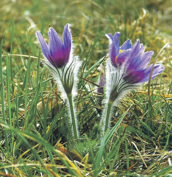 Das größte Vorkommen der vom Aussterben bedrohten Gewöhnlichen Kuhschelle (rechtes Bild) oder „Küchenschelle“ (Pulsatilla vulgaris) in Oberösterreich liegt entlang der „KuhschellenBöschung“, einem kleinen Naturschutzgebiet in Neuzeug, durch das auch der von Obstbäumen gesäumte Kreuzberg führt, liebevoll gepflegt und erhalten durch einen Verein: www.kuhschelle.at.