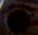 liljasydän – pieni, tumma raidallinen naaras, jolla on valkoisia laikkuja ja siniset silmät