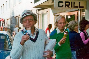 1970-luvun alun kesät kuluivat Dannholmenin saarella ja Ruotsin länsirannikolla. Paavo keittiöpuuhissa Ingrid Bergmanin kanssa ja jäätelöllä Lars Schmidtin seurassa.