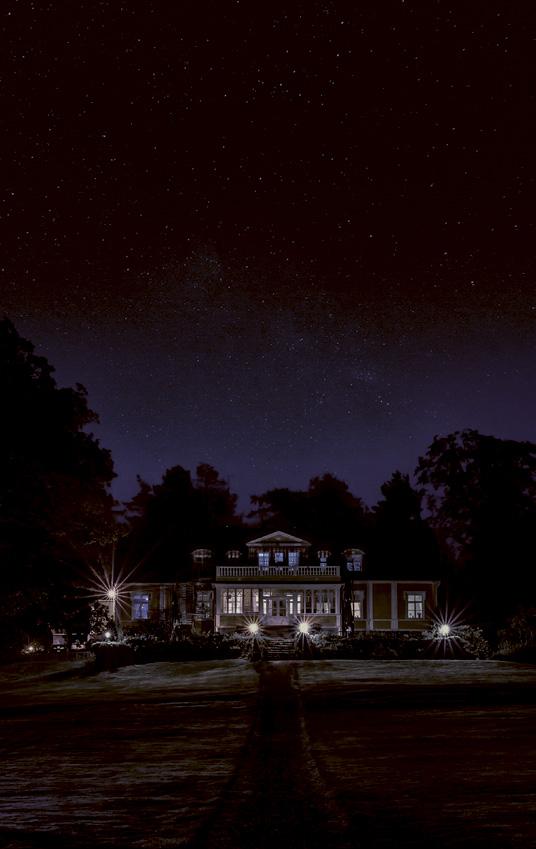 Hän menee ikkunalle ja antaa katseensa vaeltaa talon kolmen valkoisen siiven välillä. Pramealla sisäpihalla koreilee täydellisen pyöreitä puksipuupalloja isoissa ranskalaisissa antiikkityylisissä ruukuissa, jalustoillaan seisovia sinivalkoisia posliiniruukkuja, istuinryhmiksi aseteltuja valurautakalusteita ja kivipatsaita, jotka esittävät koiria ja leijonia. Vastapäisessä ruokasalissa palavat jo kynttilät. Äiti on kattanut pöytään tabletit ja pellavaiset lautasliinat, joita koristaa Gyldenstedtin suvun vaakuna, kaksi kultaista miekkaa ristissä.