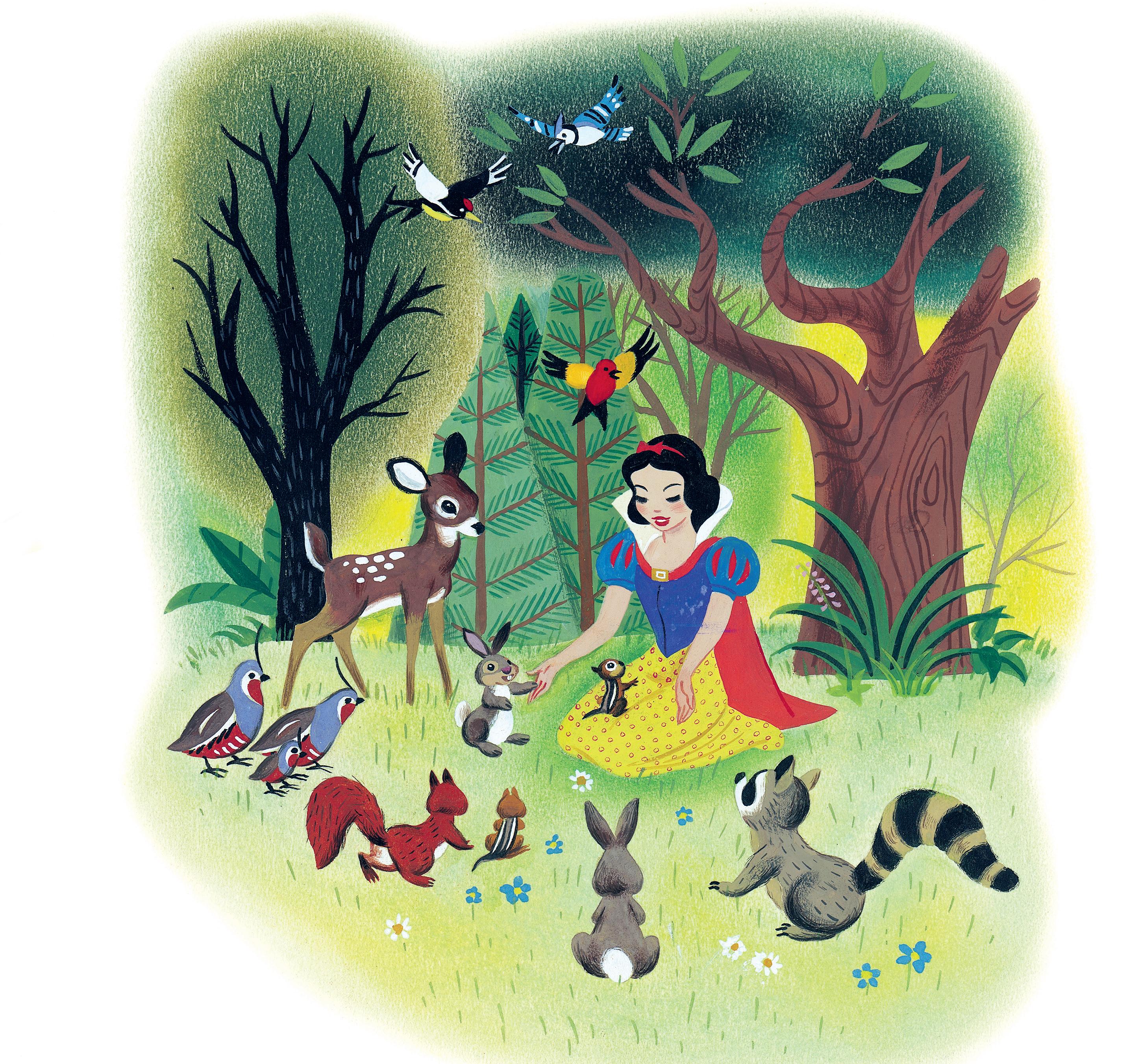 tulla esiin metsäneläimiä. Kaniinit ja oravat, pesukarhut ja linnut kerääntyivät Lumikin ympärille.