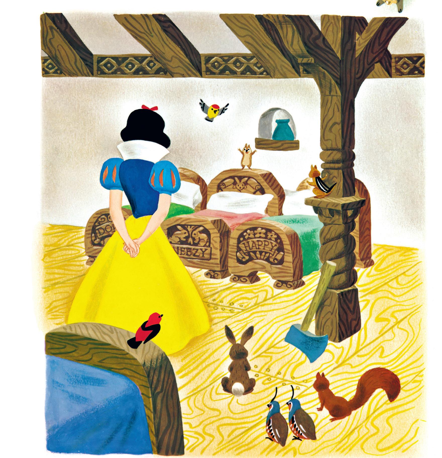 ”Nyt minulla on paljon parempi olo”, Lumikki sanoi uusille ystävilleen. ”Mutta tarvitsen yösijan.”