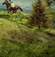 ”Näin unta, että Björniltä tuli tekstari ja kutsu laukkakilpailuihin Brohon”, hän sanoi, otti kännykän ja klikkasi viestiä. ”Se olikin totta.”