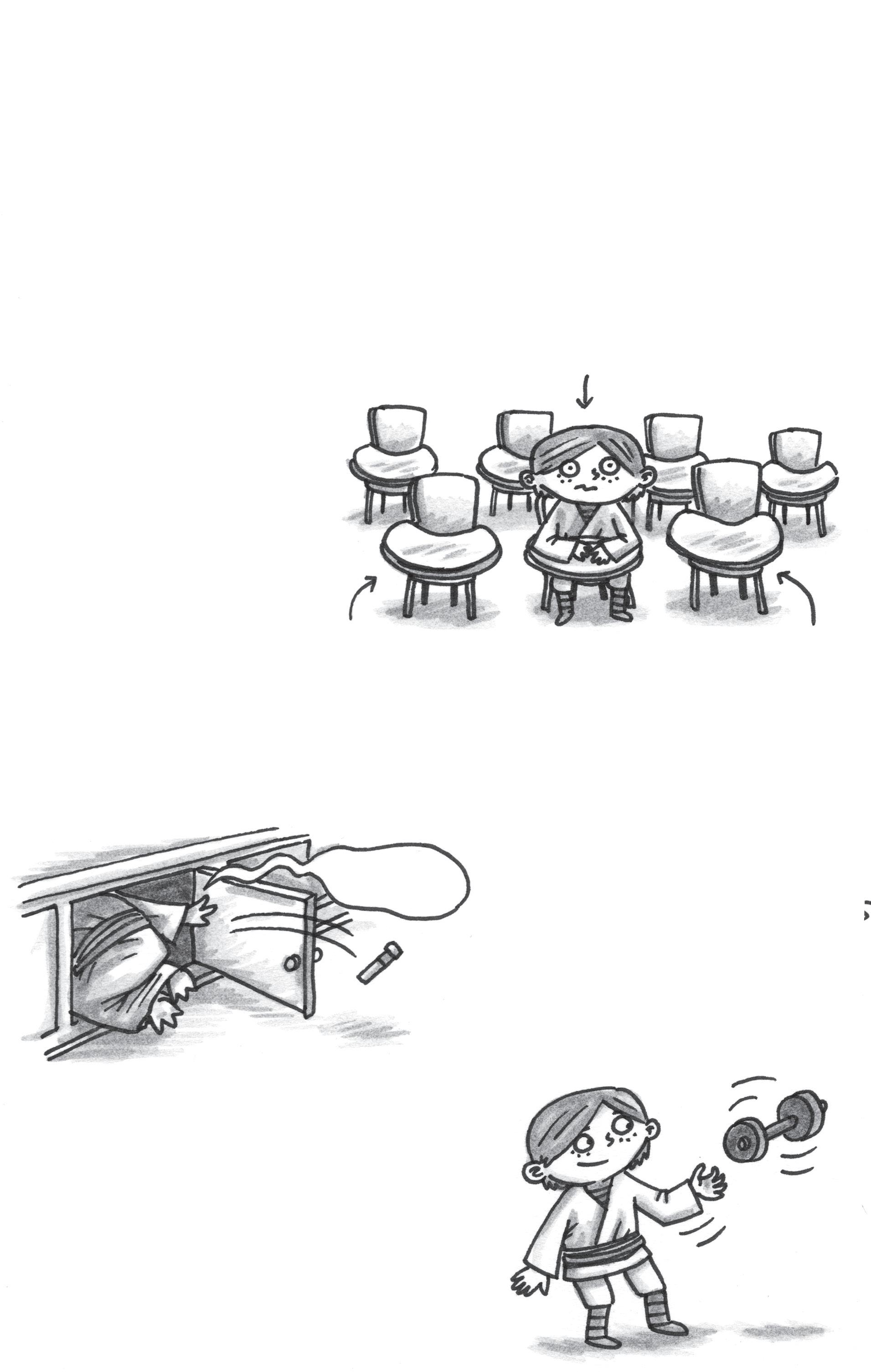 Kaikesta huomaa, että äidillä tulee olemaan kova ikävä minua, kun palaan kouluun. Tänä kesänä hän on halaillut ja suukotellut minua ihan yhtenään aina kun olen ollut kotona. Parasta koko kesässä oli ehdottomasti retki Corellian reitille isän ja Pashan kanssa. Isä esitteli meille lentotemppuja ja antoi meidän jopa auttaa tähtialuksensa hulto huoltotöissä. Davilla oli paljon kesäkursseja, eikä häntä sen vuoksi juuri näkynyt kotona, mutta juttelin hänen kanssaan aina silloin tällöin holochatissa. Koetin pitää yhteyttä myös Gaianaan, mutta häntä oli välillä vaikea tavoittaa. Hän lomaili perheensä kanssa Naboossa ja lähetti minulle sieltä aivan mielettömän siistin colokynsikalan hampaan. Piirsin hänelle kiitokseksi kuvan colosta. Odotan kovasti koulun alkua ja sitä, että näen taas hänet ja Pashan. Ja tietenkin sitä, että lentoharjoitukset alkavat. Viimeinkin aine, jossa olen hyvä! Ainoa asia, jota en odota, on Jediakatemian ruokalan sapuska... Kyllähän sitäkin yleensä niellä pystyy, mutta äidin laittamat pöperöt ovat aina paljon maukkaampia. Eikä äiti koskaan pakota minua syömään mitään, mikä tuijottaa minua lautaselta!