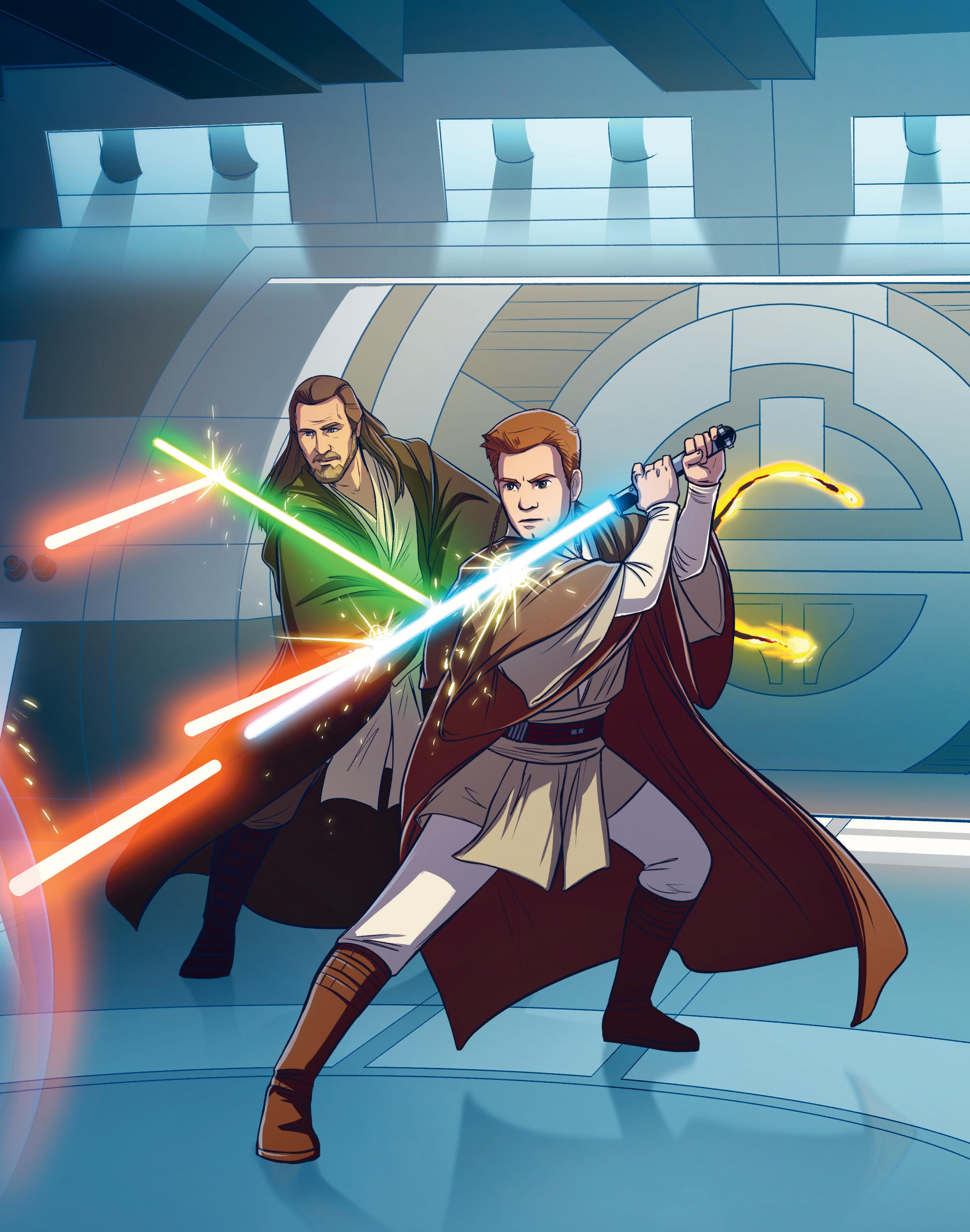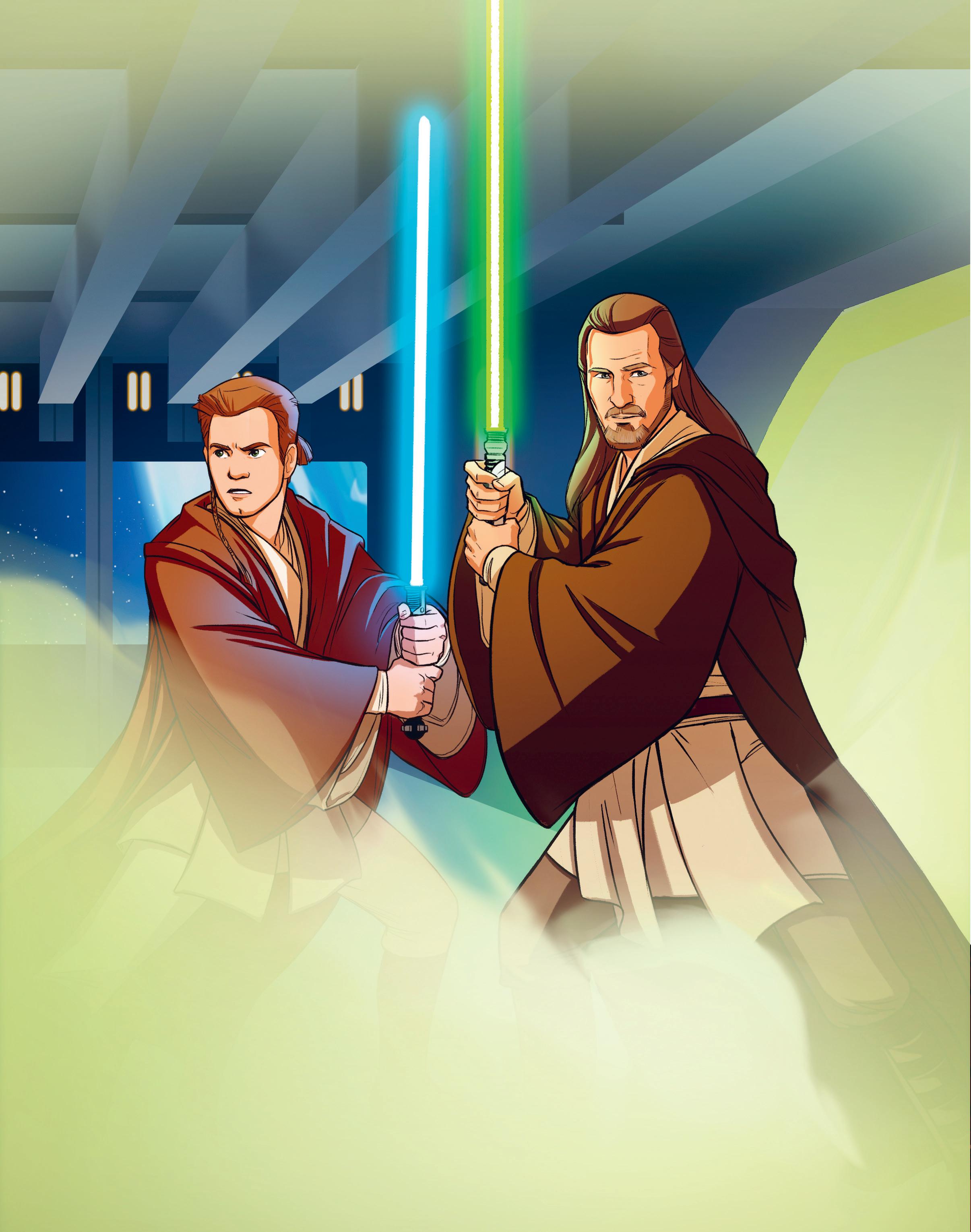 Linjakas tähtialus kiisi avaruuden mustan tyhjyyden halki kohti ihastuttavan vihreää Naboo-planeettaa. Sen kyydissä oli kaksi jediä – mestari nimeltä Qui-Gon Jinn ja hänen oppilaansa Obi-Wan Kenobi. He olivat saaneet hyvin tärkeän tehtävän.