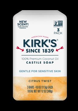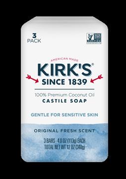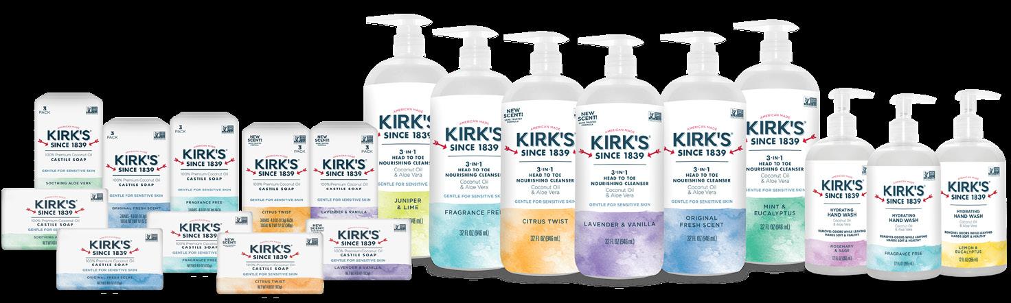 Kirk’s is the only coconut castile soap brand continuously made since 1839. We only use good-for-you, safe ingredients for health-conscious families who want simple, everyday, high quality cleansing products at a good value.