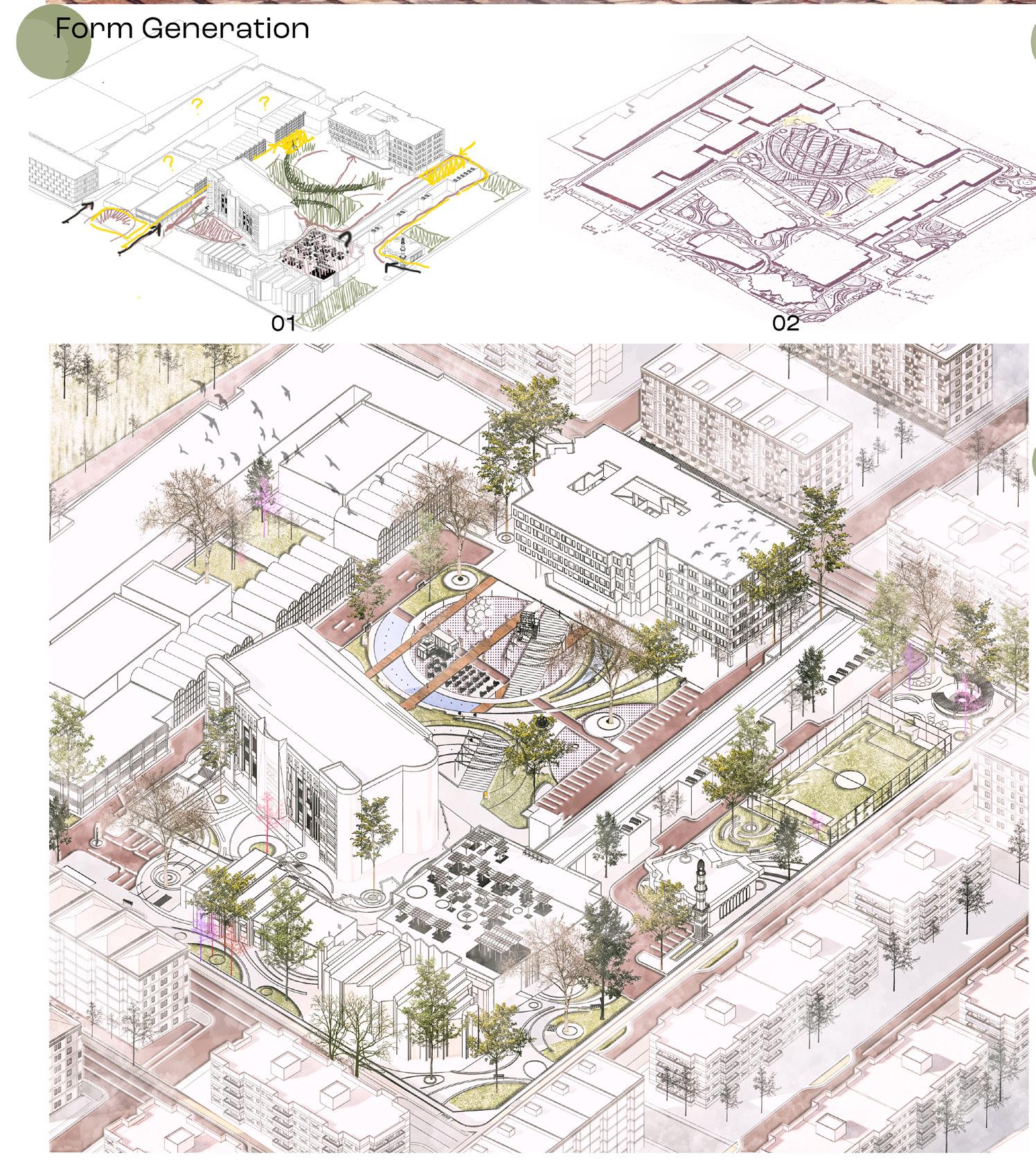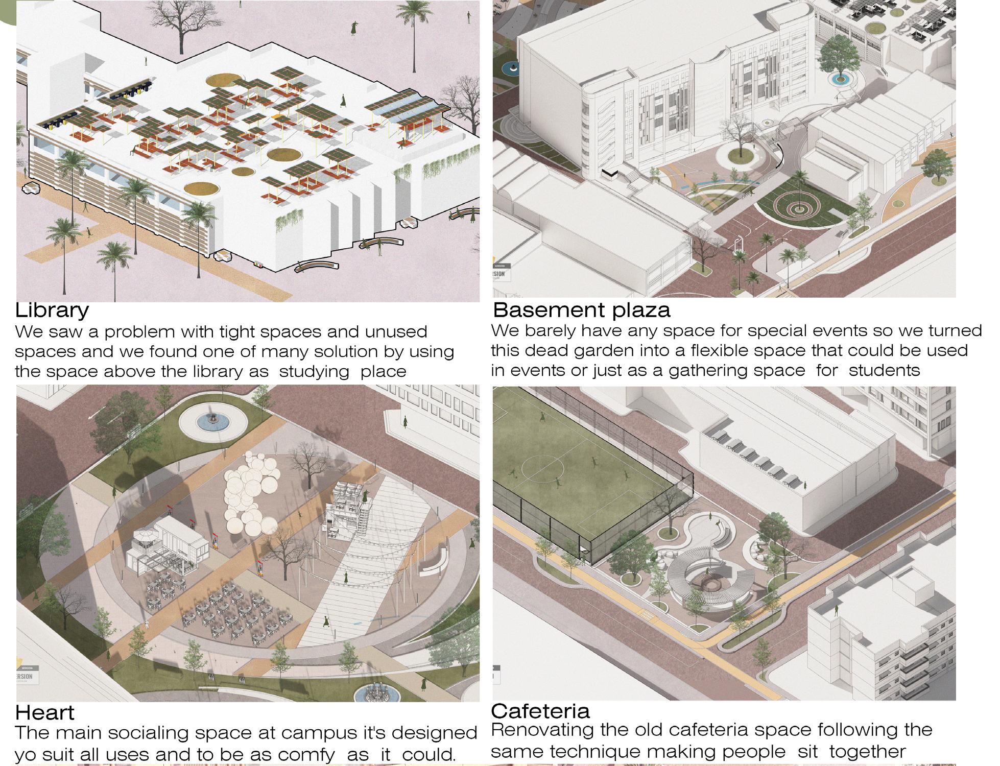 The competition asked for the reimagening of the college landscape... to transform the outdoor areas into more of a helpfull spaces, capable of producing more effitient engineers .