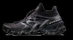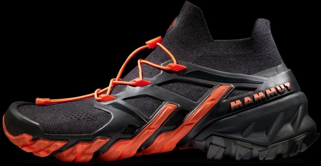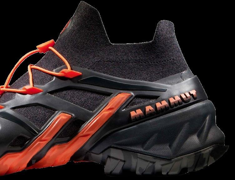 El calzado que hoy os presentamos es realmente polivalente. Basado en la innovadora tecnología MAMMUT 360° FUSN, se convierte en una opción perfecta si se busca combinar amortiguación, agarre y comodidad, de forma robusta y liviana al mismo tiempo. Es senderismo rápido que permite acometer pasos que podrían ser catalogados de alpinismo o escalada. Y todo ello, atendiendo a la preocupación que la marca suiza siente por la sostenibilidad. MAMMUT elimina gradualmente la utilización de productos que contienen PFC, prácticamente no biodegradables. Hablamos de sostenibilidad a través de la innovación. Hablamos de utilizar el mejor equipo alpino protegiendo a la vez las montañas que tanto amamos. MAMMUT 360° FUSN TECHNOLOGY encarna este ideal. Basado en un diseño aerodinámico, cada zapato está construido con sólo cuatro partes. El resultado es un modelo dinámico y liviano creado con un 73% menos de componentes y un 60% menos de procesos que los utilizados en calzados de la misma categoría. MENOS ES MÁS.
