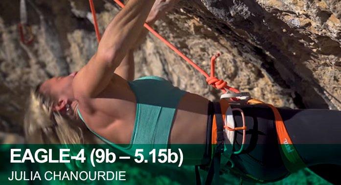 El 7 de noviembre de 2020, la escaladora francesa de 24 años Julia Chanourdie entraba en la historia al convertirse en la tercera mujer en realizar un 9b tras Angela Eiter (La planta de Shiva - Octubre 2017) y Laura Rogora (Ali Hulk Extension Total sit start - Julio 2020). En este vídeo vemos a Julia encadenar Eagle-4, en Saint-Léger-du-Ventoux, una vía con primera de Adam Ondra en 2018 y segunda de Hugo Parmentier a principios de 2020.