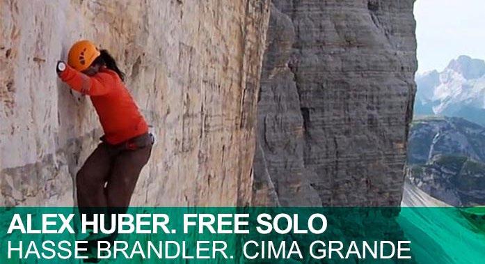 El 1 de agosto de 2002, Alex Huber se adentró en la verticalidad dolomítica, en la conocida vía Hasse Brandler (7a+), en la cara norte de la Cima Grande de Lavaredo, sólo con sus pies de gato y la magnesera, alcanzando la cima en cuatro horas tras una escalada sorprendentemente espectacular. La Hasse Brandler fue escalada por primera vez por Lothar Brandler, Dieter Hasse, Jörg Lehne y Sigi Löw en 1958, y liberada por Kurt Albert en 1987. Un trazado durísimo psicológicamente, una pared impresionante de 550 metros de altitud con roca muy rota, muchas travesías y mucho desplome donde el riesgo está omnipresente.
