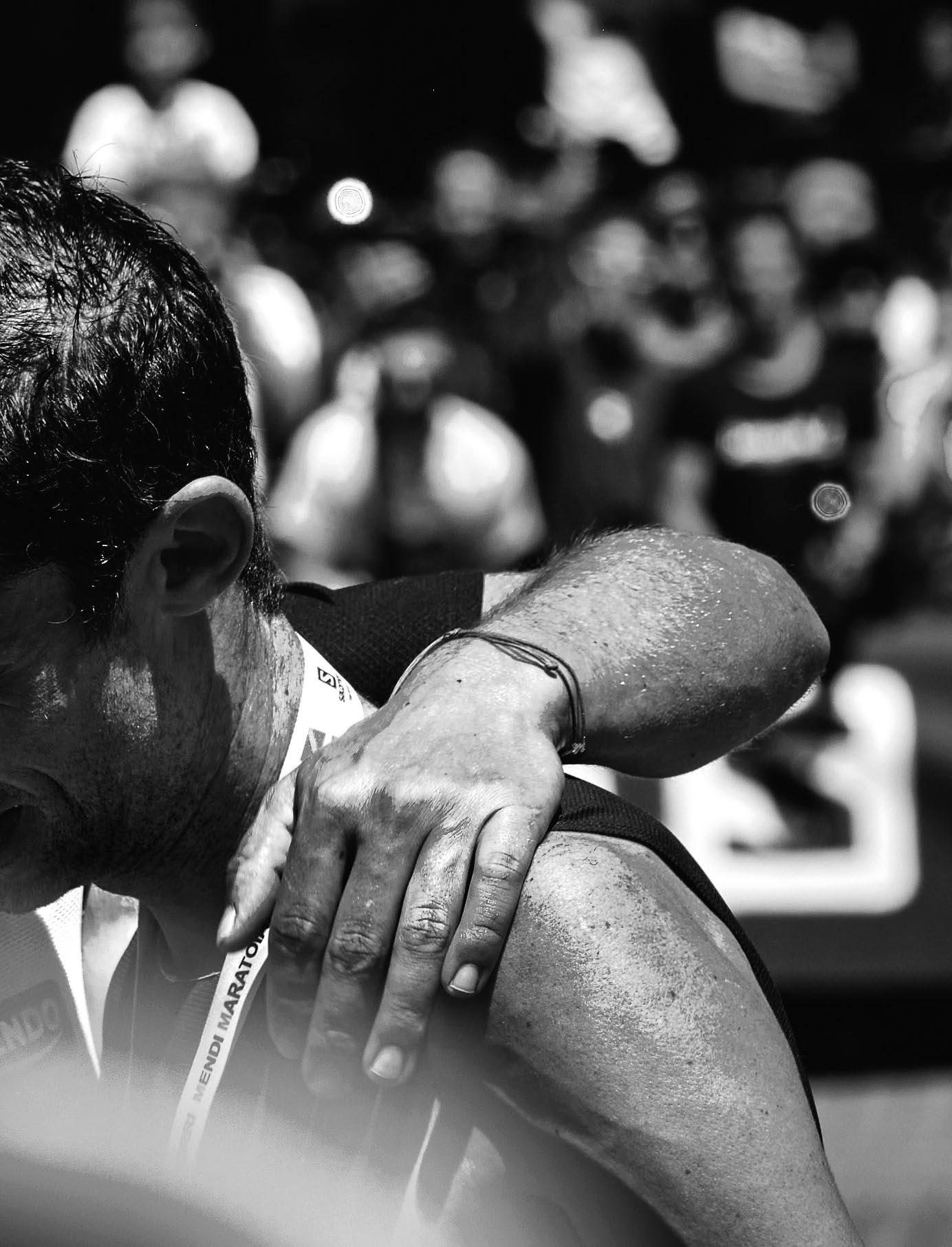 La palabra euforia, “ εὐφορία ”, de origen griego, significa fuerza para continuar, haciendo referencia a la capacidad para resistir al sufrimiento y a las adversidades. También tiene otro significado que quizás nos resulte más familiar. La euforia es una sensación de bienestar o alegría que se manifiesta al mundo exterior. Son, a nuestro juicio, dos significados muy diferentes, pero que curiosamente se manifiestan simultáneamente en la subida de Sancti Spiritu, en Zegama Aizkorri, de cuya meta hemos elegido la fotografía de portada para este número que tienes delante de ti.