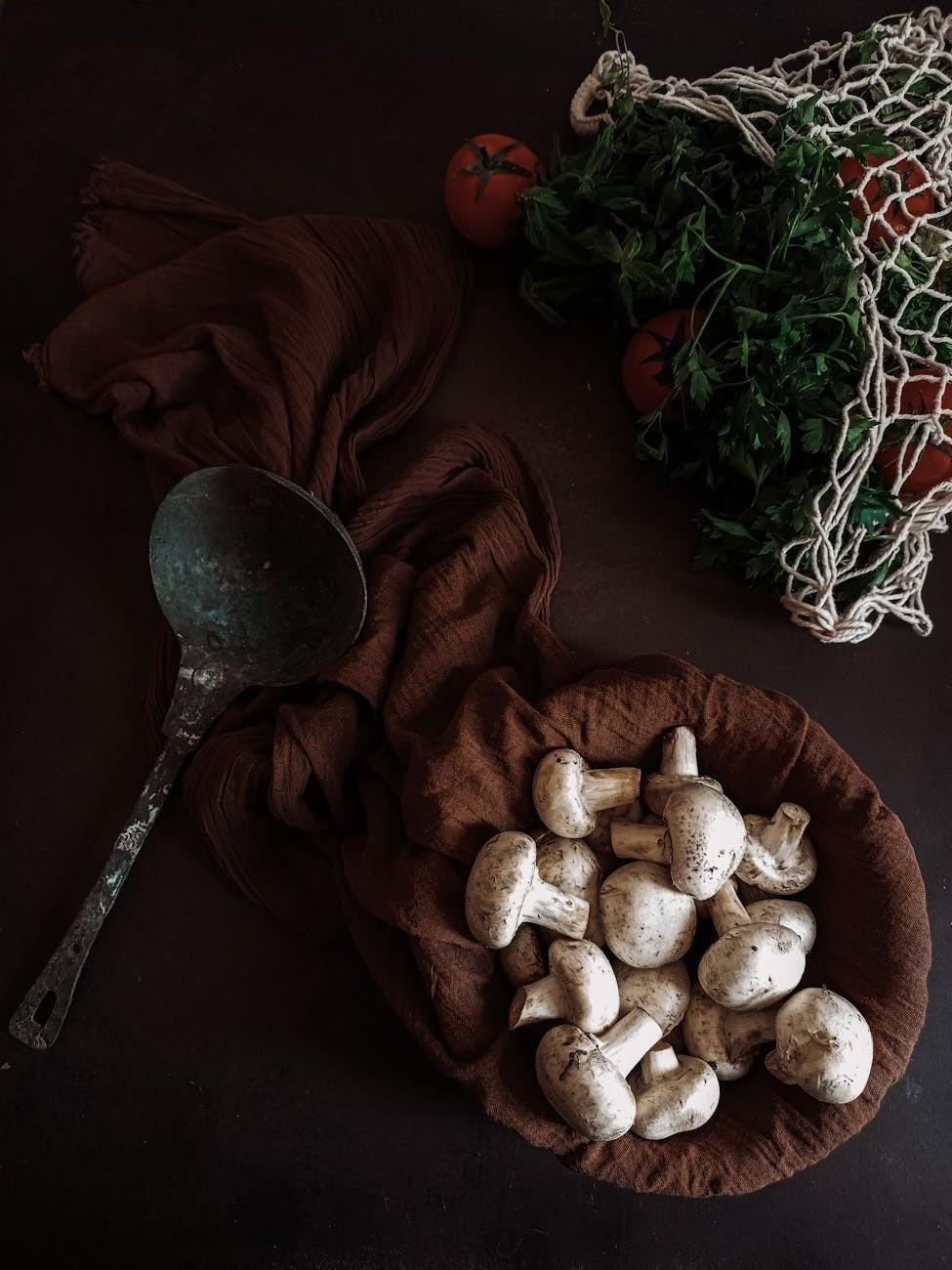 1. Die Champignons putzen und in Scheiben schneiden, Zwiebel und Knoblauch vorbereiten.