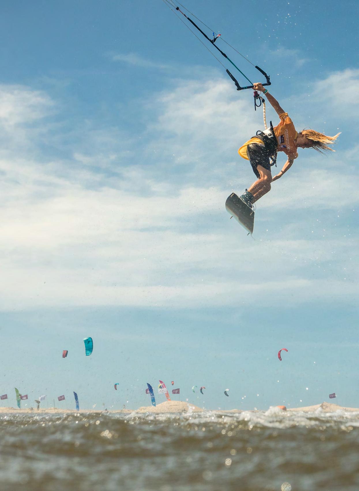 die Fotos, die schon veröffentlicht wurden. Während des Sichtens meines Archivs bekam ich zudem eine andere Sicht auf meine Fotos. Für das Buch habe ich auch einige Fotos ausgewählt, die früher für mich nicht in Betracht gekommen wären. Ich habe ja vorwiegend für Brands fotografiert, es war wichtig, dass die Marke auch erkennbar ist. Bei der Auswahl für das Buch ging es mehr um Emotionen und um den Moment. Das wollte ich unbedingt in meinem Buch zeigen – meine Vision vom Kiteboarden. Meine Vision ist viel mehr als nur Handeln. Denn der Grund, warum ich Kitesurfen seit 15 Jahren shoote, ist der, dass ich den Sport liebe. Ich mag es, den Elementen ausgesetzt zu sein. Ich liebe es, nass, salzig, sandig zu sein oder auch sandgeblasted zu werden. Auch das wollte ich in meinem
