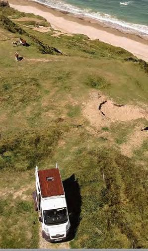 Vor allem hier an diesem besonderen Platz. Wir stehen auf einer Klippe, vor uns galoppieren Pferde die Hügel auf und ab. Wir schauen auf eine Landschaft voller grüner Dünen und einen endlosen Sandstrand. Wieder einmal sind wir hier die einzigen Menschen. Selten haben wir uns so verbunden mit der Natur gefühlt. Uns fällt es schwer aufzubrechen, aber unsere Vorräte neigen sich dem Ende und wir benötigen dringend neues Trinkwasser. Mit einem weinenden und einem lachenden Auge verlassen wir unseren neuen Lieblingsplatz.