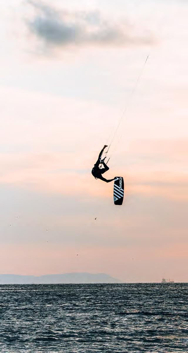 dealern aus Marokko geklaut. So hatte ich nur noch einen 6/4er mit Haube – der war etwas warm. Das mit den Drogendealern ist übrigens kein Spaß. Direkt am Kitespot in Palmones, wo ich, wenn der Levante zu stark wird, gerne zum Freestylen hingehe, ist einer der Drogenumschlagsplätze. Davon bekommt man allerdings nicht viel mit. Außer dass es einmal pro Woche in der Nacht sehr busy wird.
