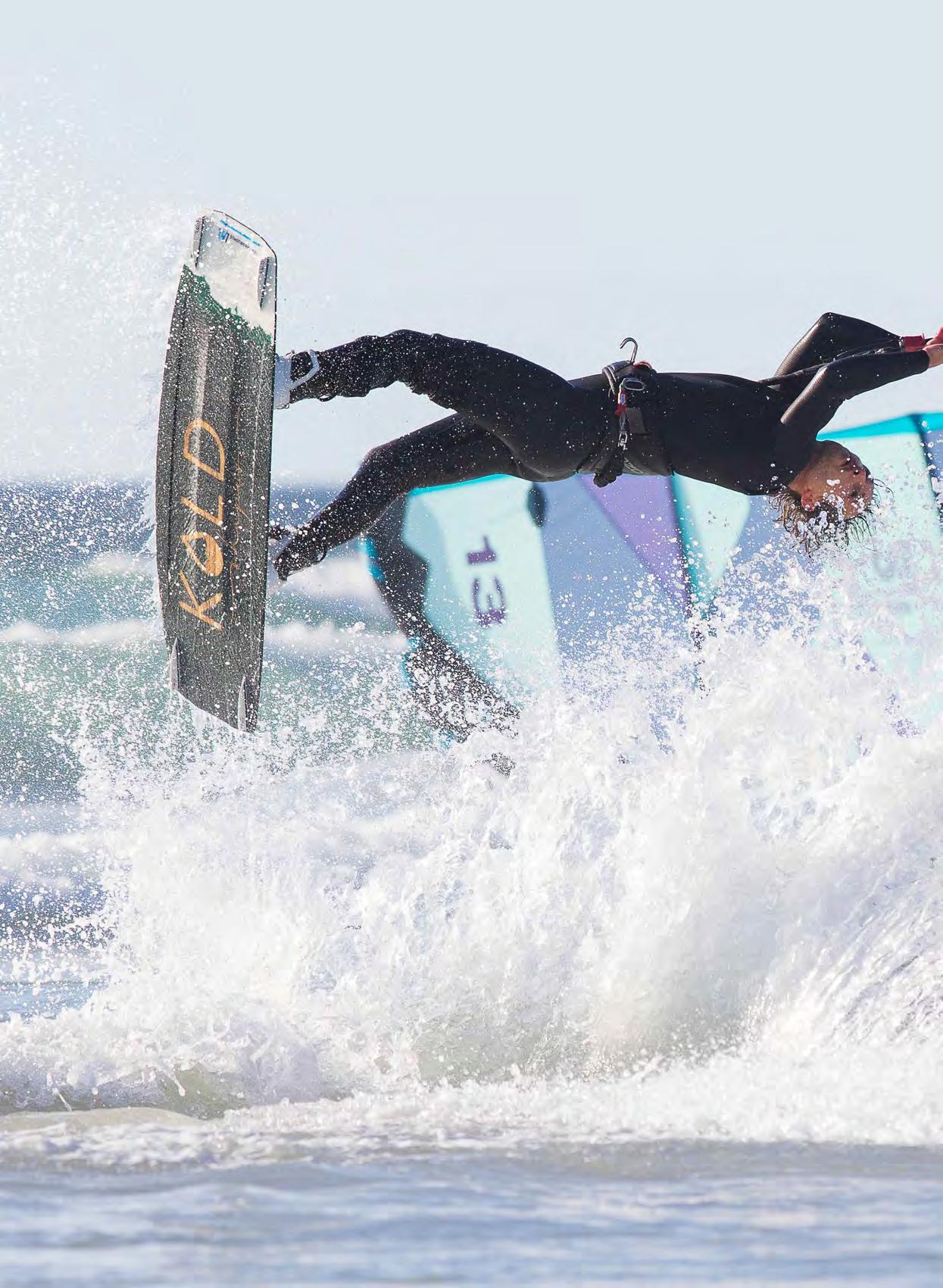 „Ich wollte mal sehen, ob ich überhaupt eine Chance habe“, so der Youngster keck. Die Chance hat er bekommen – und grandios genutzt. Beim ersten Freestyle-World Cup der Saison 2022 belegte er auf Anhieb Platz 13, im Best Trick stand er sogar auf dem Treppchen – direkt neben seinem Idol, dem vierfachen Weltmeister Carlos ‚Bebe‘ Mario. Seitdem ist der Hofer fester Bestandteil der GKA World Tour. Neben im Freestyle startet er auch im Hydrofoil-Freestyle und Big Air. Die Saison 2022 im Freestyle schloss er auf Platz zwölf ab, aktuell steht er sogar unter den Top 10 der Weltrangliste. Wir dürfen gespannt sein, was Finn im Profizirkus noch erreichen wird. GKA World Tour, ab Seite 82 Interview Finn Flügel, ab Seite 88