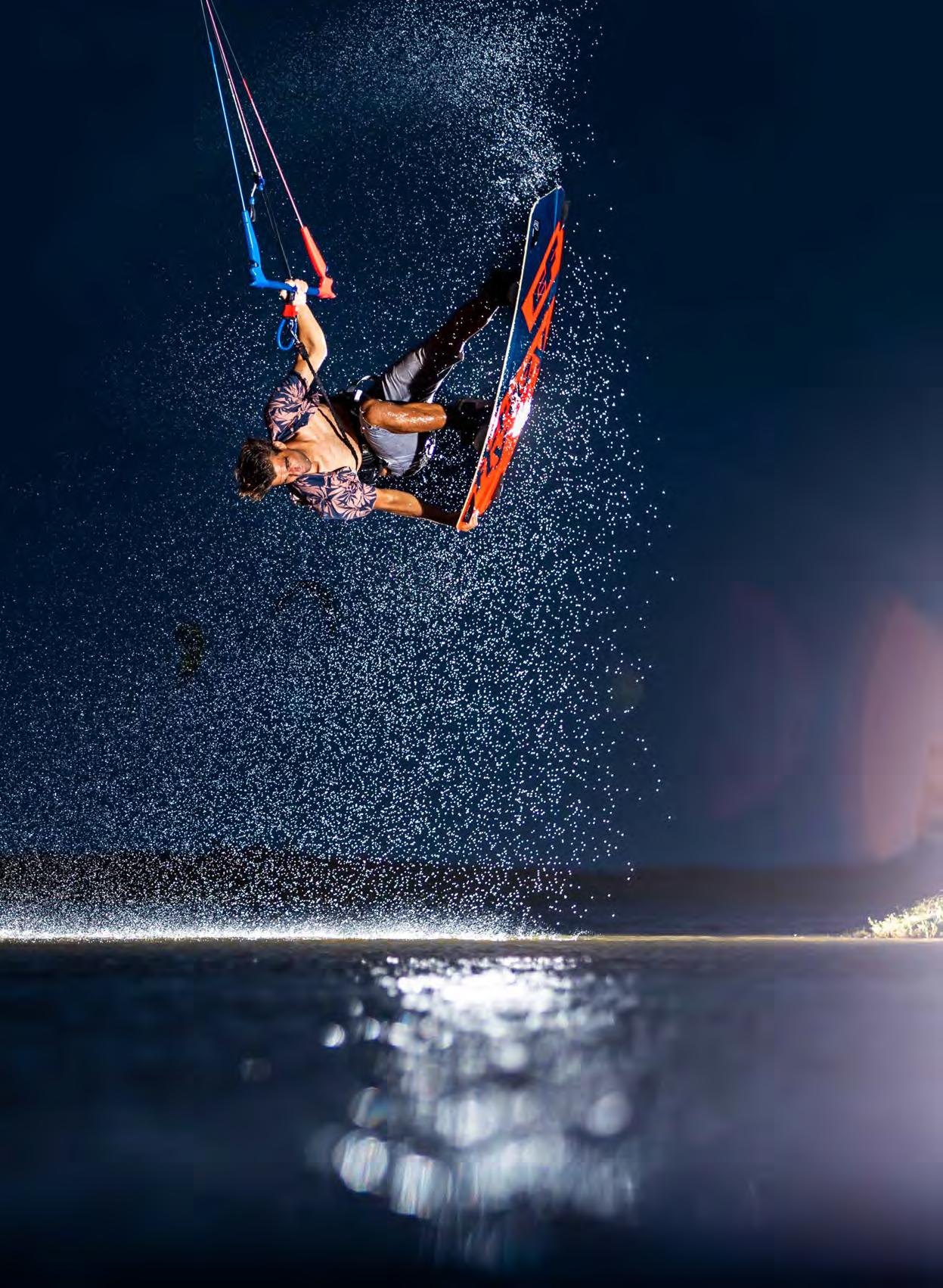 Maxime Chabloz | Taiba Maxime ist wirklich cool. Er macht mehrere KiteboardingDisziplinen auf World-CupNiveau und gewinnt auch Ski-Rennen. Es war ziemlich schwierig, das Shooting mit ihm zu vereinbaren, da er alle Wettbewerbe mitgefahren ist, die zu der Zeit in Brasilien stattfanden. Aber wir haben es geschafft. Und wie immer sind dabei einige meiner Lieblingsaufnahmen entstanden. Jedes Mal, wenn er abdrückt, stimmt alles, selbst der Spray ist perfekt. Und er hat eine wirklich tiefe Trickkiste. Das macht es einfach, meine Blitze zu positionieren.