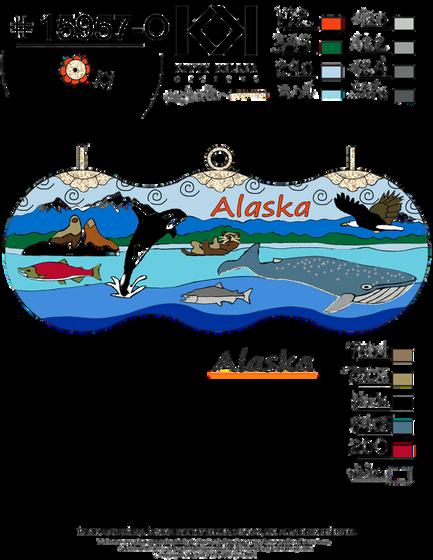 #12866-O Caribou, Brown bear, Moose, Bald Eagle, Mtn Scene #12871-O Grizzly, Bald Eagle, Moose #13699-O State , Dog Team, Moose, Eagle, Bear, Northern Lights #15960-O Grizzly with cub in Lupine #15952-O Sea Otters #15953-O Whales #15959-O Grizzly Bears Fishing #15957-O Water Scene