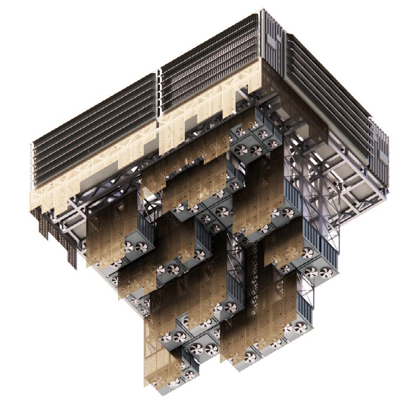 In the final stage, these hybrid objects were fused with actual architecture. As seen in the contrast between the floor plan and the axonometric building section, CO₂-capturing machines equipped with filters are integrated into residential units, supplying purified air to the interior. At the same time, the filtered air is released into the CO₂ Free Park, where it merges with kinetic devices to generate an entirely new type of park atmosphere. Through this process, people are able to sense, observe, and experience the act of filtration directly.