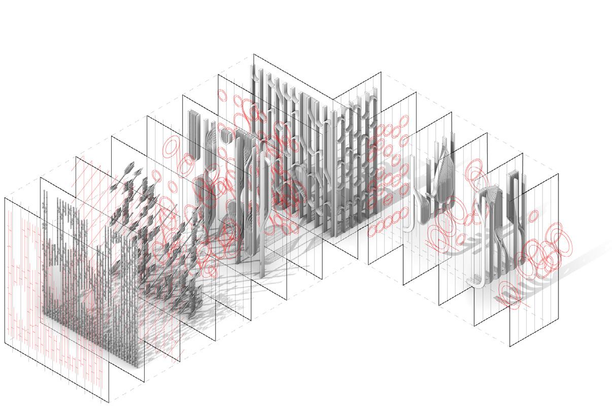 Design begins not with the final form, but with a process—of layering, iterating, and responding. Many of the projects in this portfolio explore architecture as more than structure or utility: they treat it as a sensory and symbolic medium capable of engaging human experience and ecological narratives. Influenced by the idea of infrastructure as poetics, some projects reimagine systems as affective and spatial agents, while others draw on repetition, material transformation, and emergent geometries to create rhythm and atmosphere.