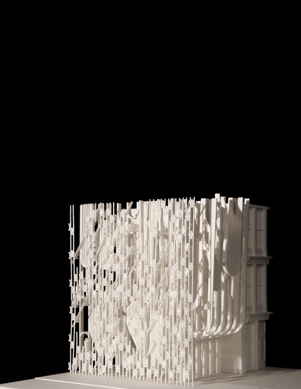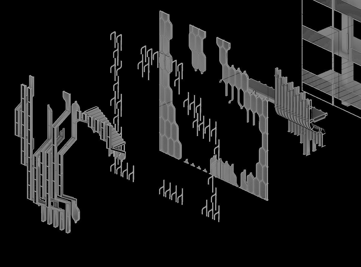 “Mimicrying Facade” is an architectural experiment where different façade systems coexist with similar functions and forms, yet never fully integrate. Rooted in the concept of mimicry, the project explores the tension between similarity and difference, and the assemblage-like collisions that shape the façade design.