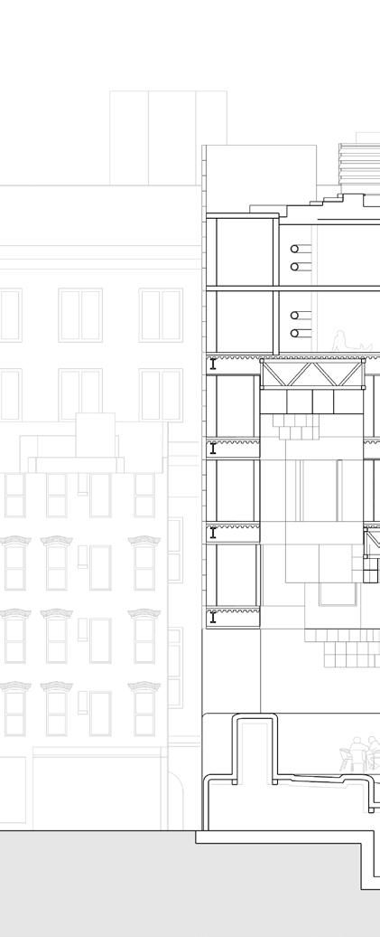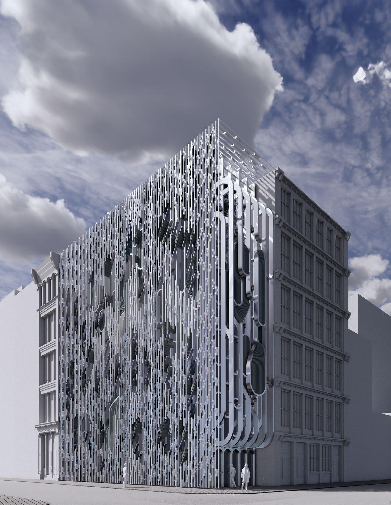 Respecting this context, the CO2 Free Park is positioned towards the rear balconies of the site, while the exterior envelope aligns with the vertical rhythm of neighboring windows, creating a contrast with the interior conditions of the building.