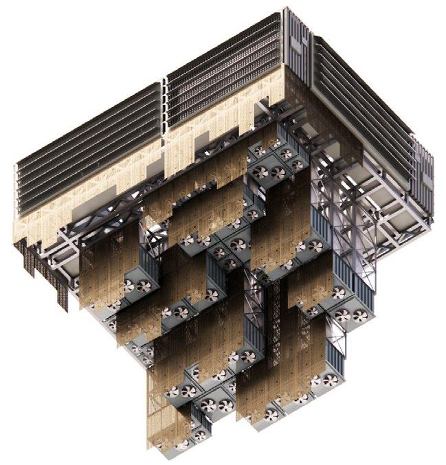 The final façade, shaped through layering and density testing, metaphorically resembles a waterfall. It introduces a pocketpark quality into the city’s vertical monotony, with each layer abstracting elements of flowing water—streams, stones, and mist—turning the skin into both structure and poetic image.