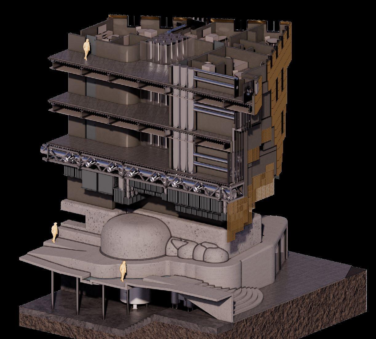 Arial Axonometiric View of Building Rhino, Enscape, Photoshop