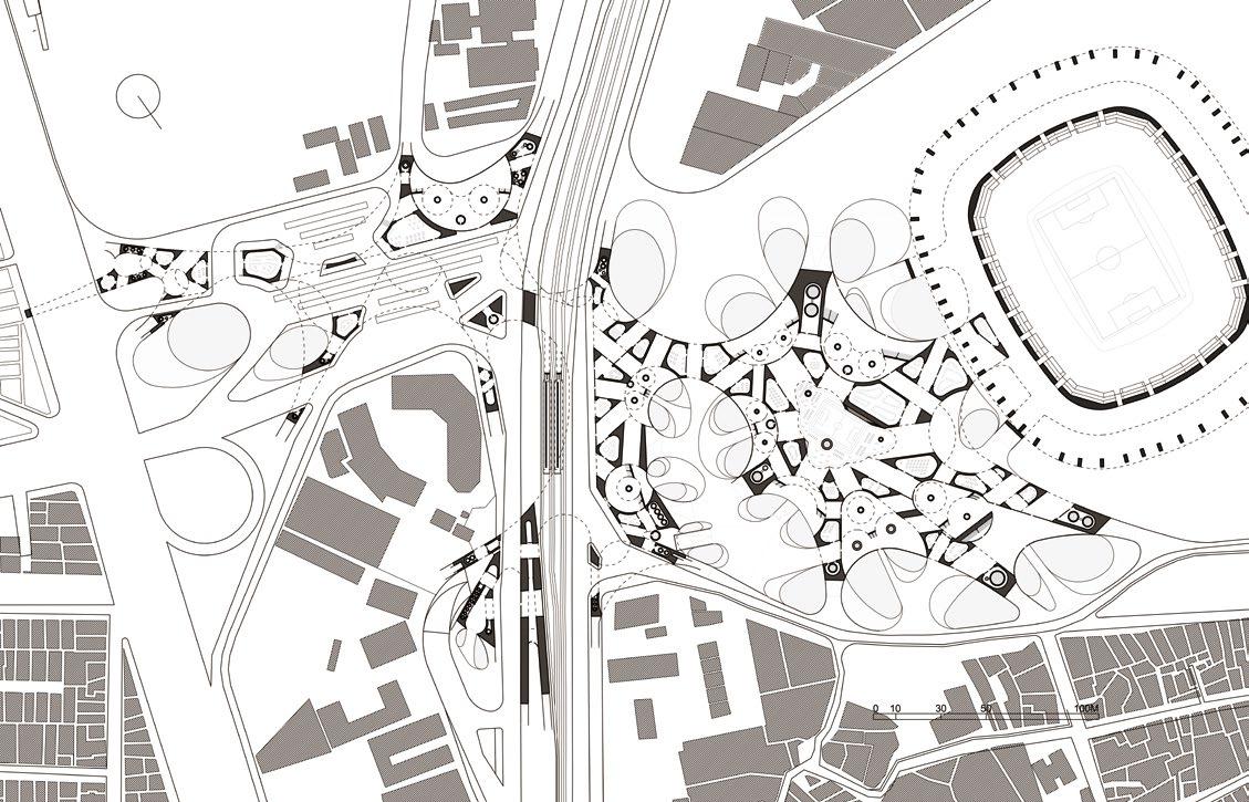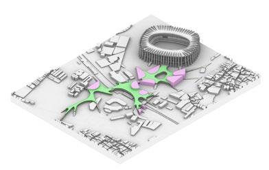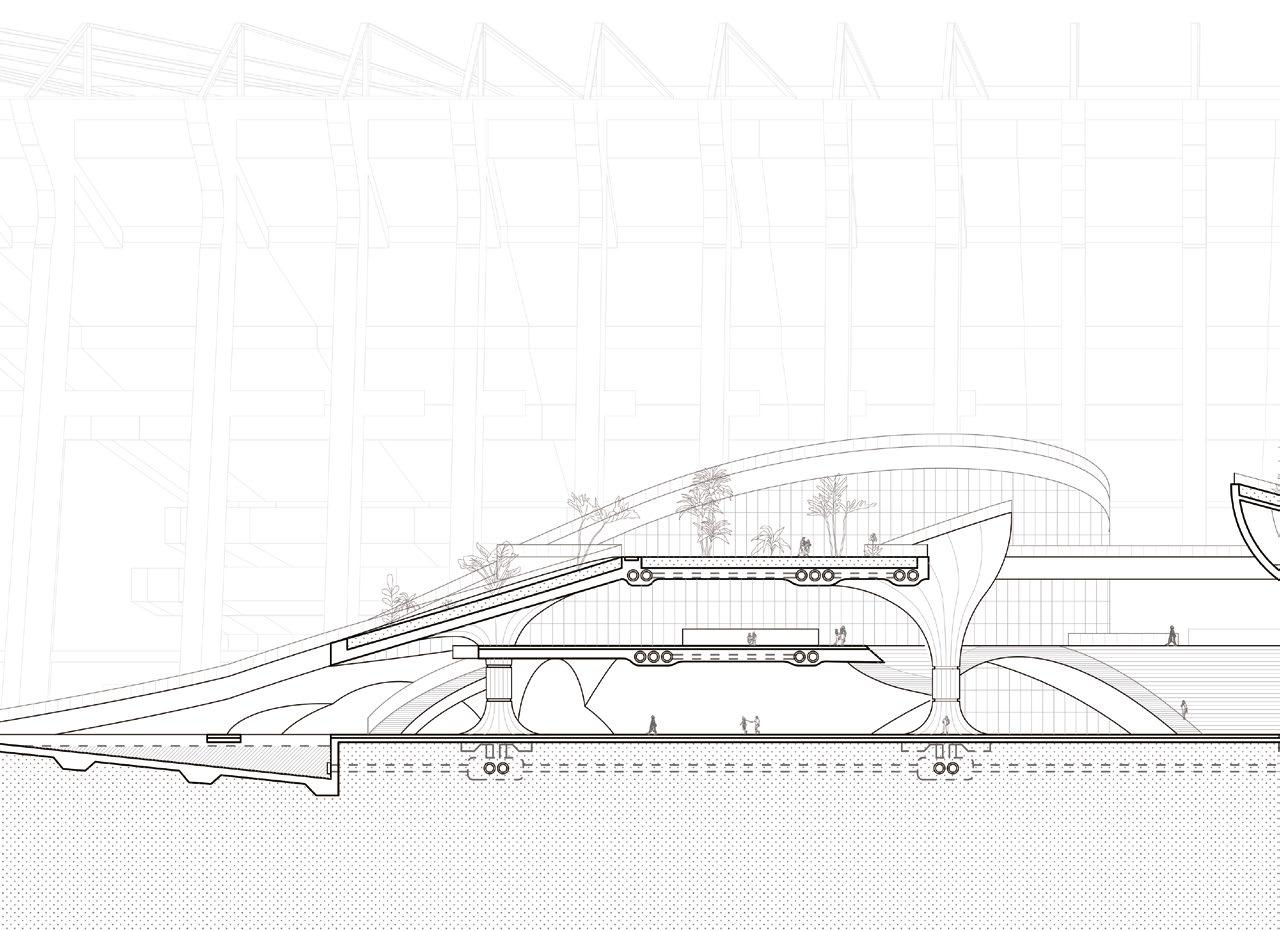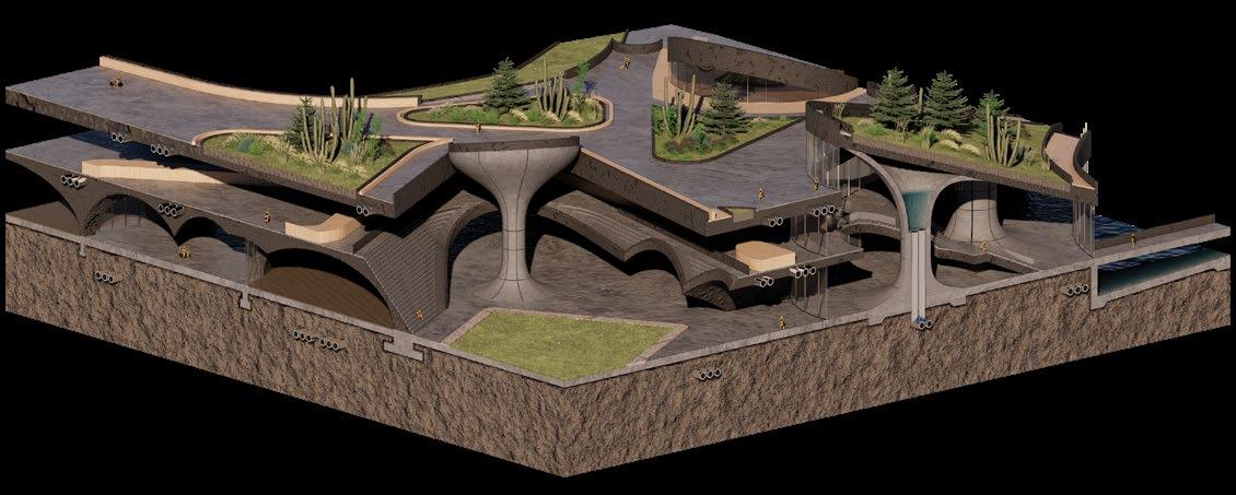 This project is located near the Norte Stadium in Mexico City and speculates on the city’s future conditions before and after large-scale events such as the upcoming World Cup. It addresses the paradoxical challenges of water scarcity and flooding that affect the city, reconnects pedestrian networks fragmented by road infrastructure, and provides new public space. More importantly, through a speculative lens, the project extends beyond problem-solving to propose an experimental framework that reimagines how infrastructure and urban life can generate new possibilities for community activation and resilience.