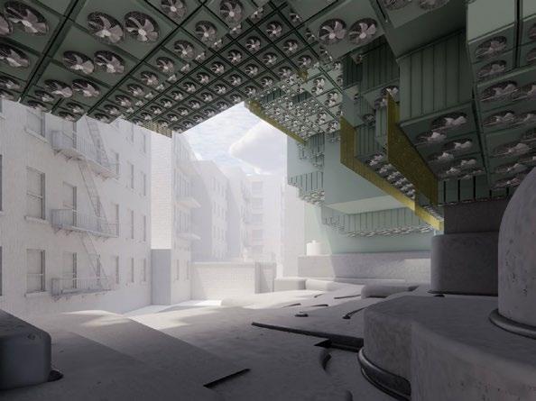 This project explores the integration of CO₂-capturing technology with urban elements such as small parks in New York City. Its goal is to merge futuristic technology with familiar spaces, creating a new architectural experience where past and future intersect. Through this process, the project investigates how emerging technologies can organically embed themselves within the urban environment.