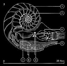 Deep Sea Nautilus Diagrams showing external shell and internal chambered anatomy