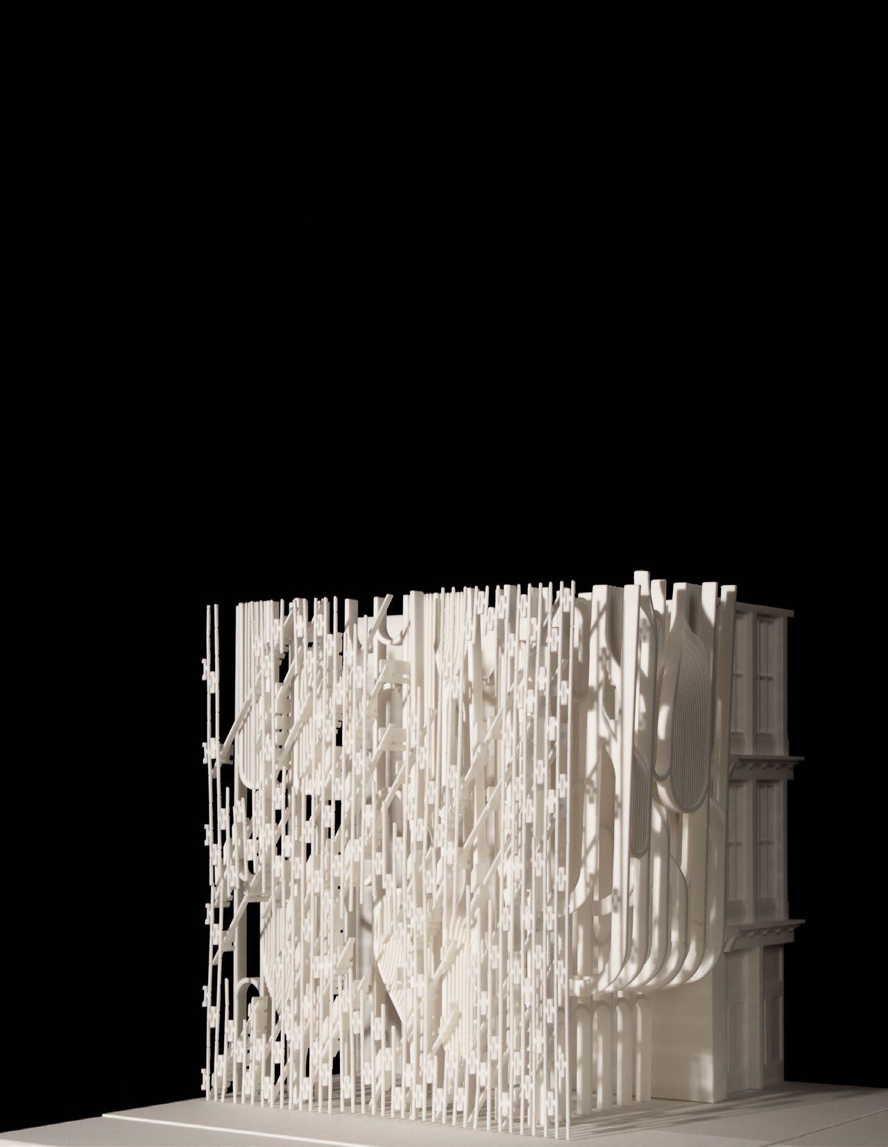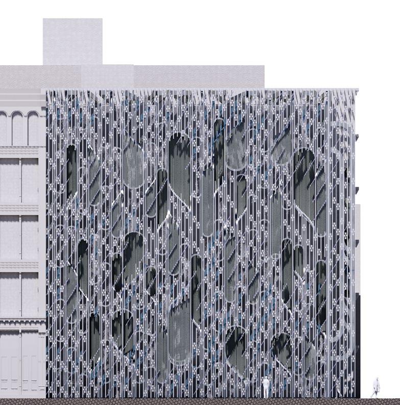 With the goal of designing dynamism while respecting the strongly vertical context, the project was gradually developed by varying density, scale, layering, and assembly.