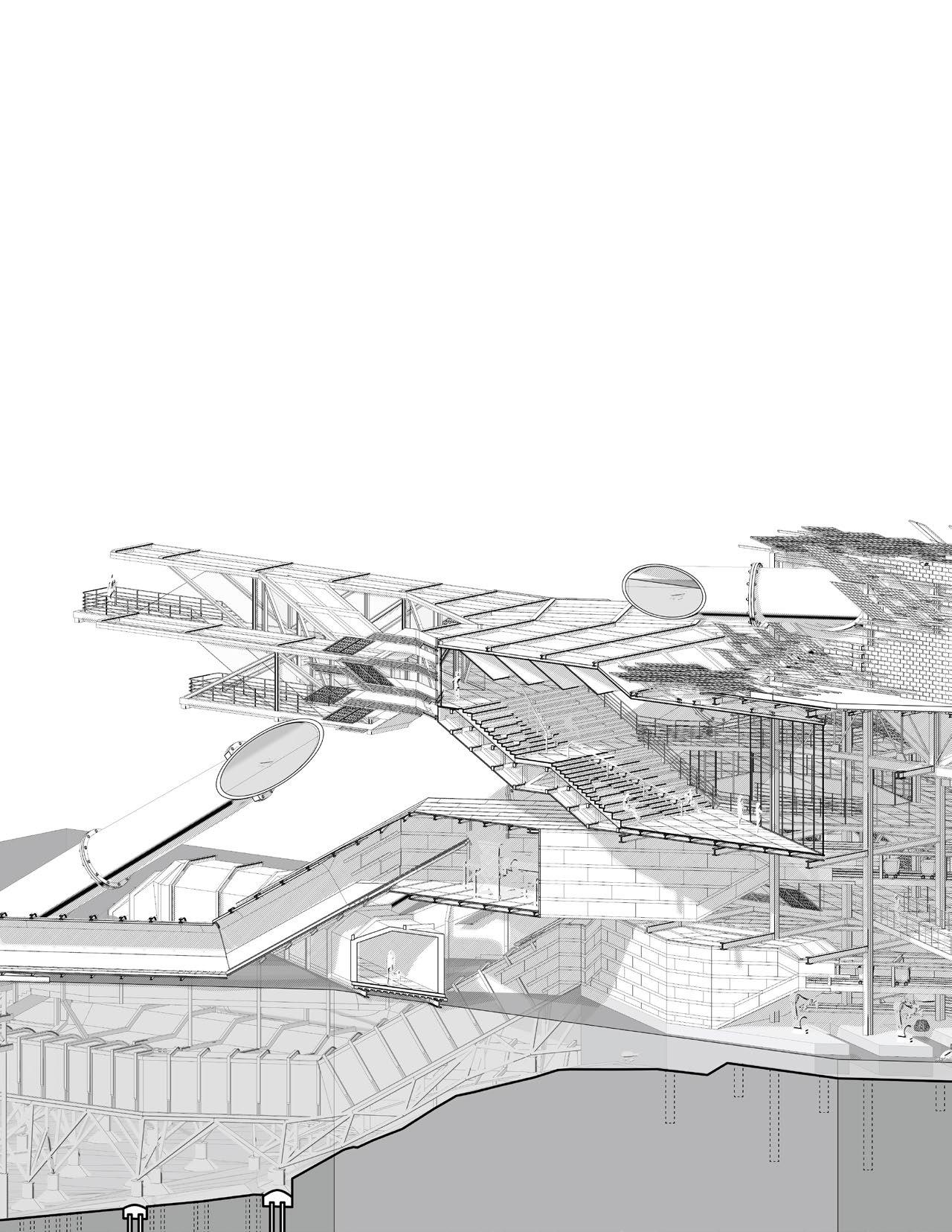 This project focuses on oyster cultivation as a means of water purification. Research at both local and global scales shows that climate change and sea level rise are driving marine pollution. Building on the Billion Oyster Project, the site is proposed as a testing ground for an automated, globally adaptable purification system.