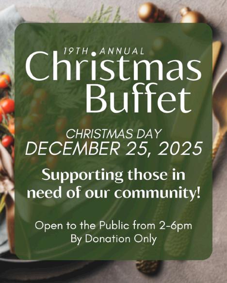We’re bringing back our traditional Christmas Buffet—open to the public and donation-only. All proceeds will support a local community member. More details coming soon!