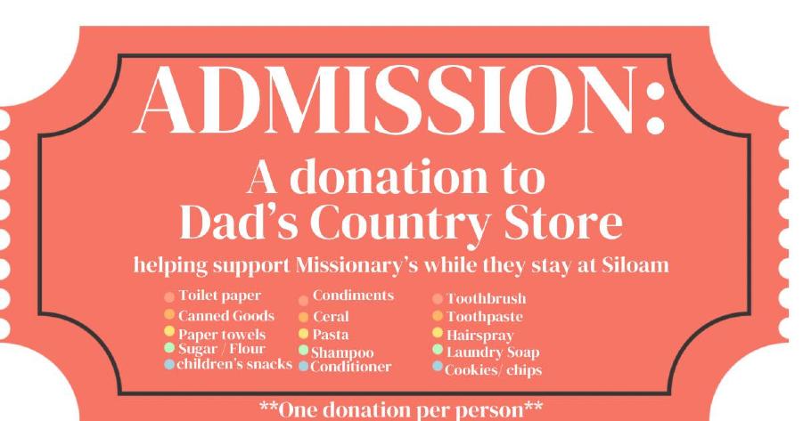 Help us stock Dad’s Country Store, which provides essential items free to missionaries! Suggested donations include: