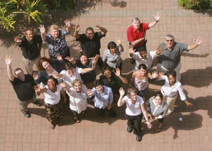 Van bo na onder: Christo van der Rheede, Johan Allers, Mariné van Brakel, Denver Moses, Olga Wyngaard, Cristal Peterson, Charlene Lackay, Theresa Olivier en Hugo Theart.