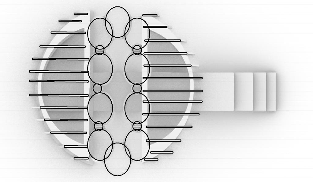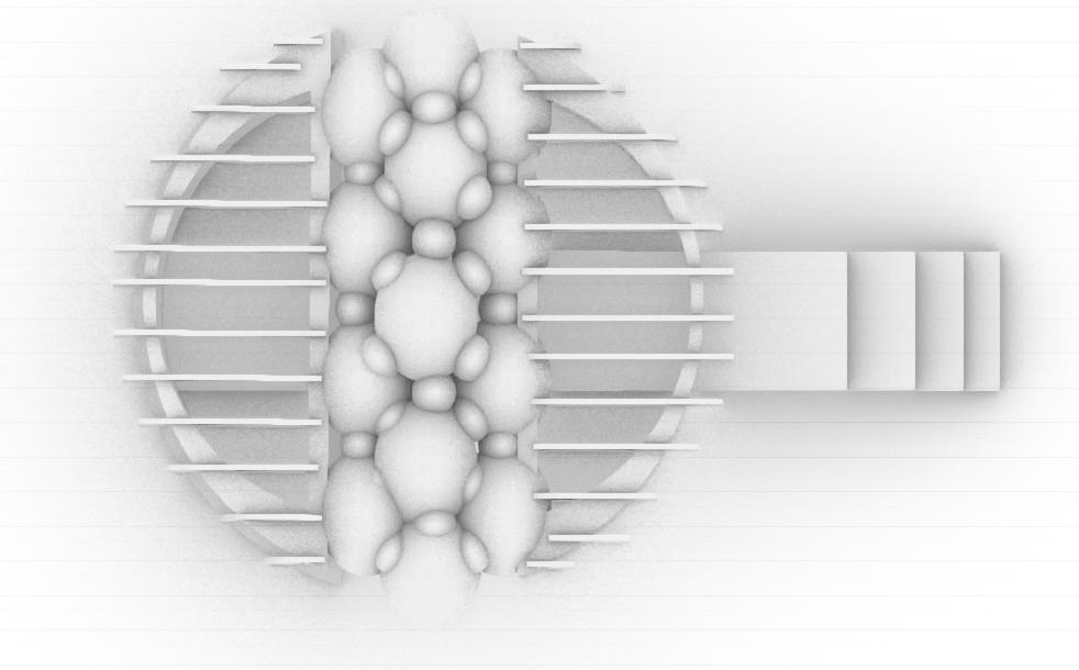 The services are placed into two extruded volumes, in order to become invisible to the eye, and placing the main facilities into c-platforms, creating internal relationships between individuals.
