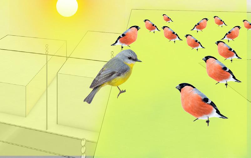 The story places a bird being exluded from the other birds. The storyboards display its journey as an outsider watcher to a relationship he intends to be part of, but which he is not. The bird follows other birds throughout the city, and moving nearer to the tower in avery storyboard. The two other birds enter the tower and are not visible anymore, thus the lonely bird enters the tower widow to, due to the curiousity of where the other birds went and what is inside of the tower. At the end, the bird ends up at the top of the tower, overlooking the whole city, and becoming friends with the other two birds, which were also enjoying the view from the tower.