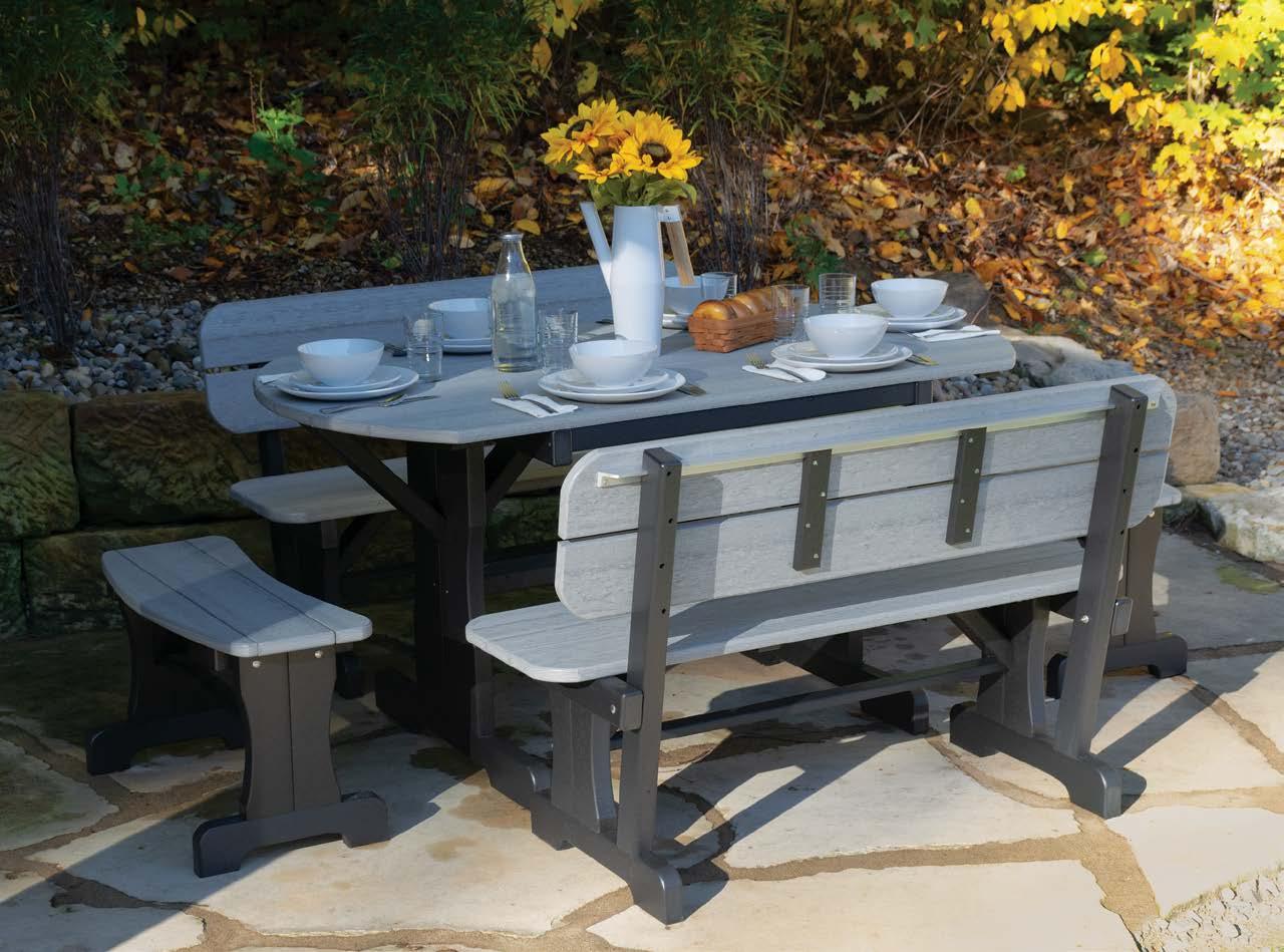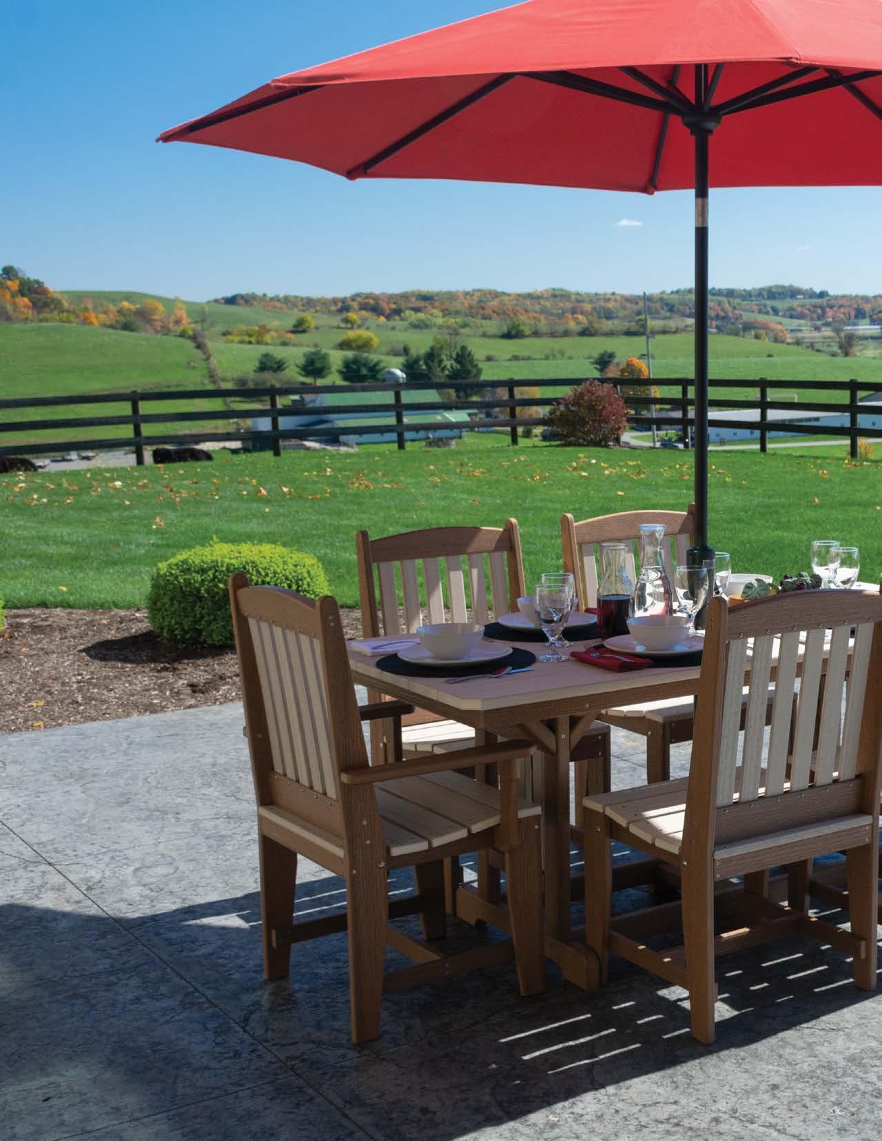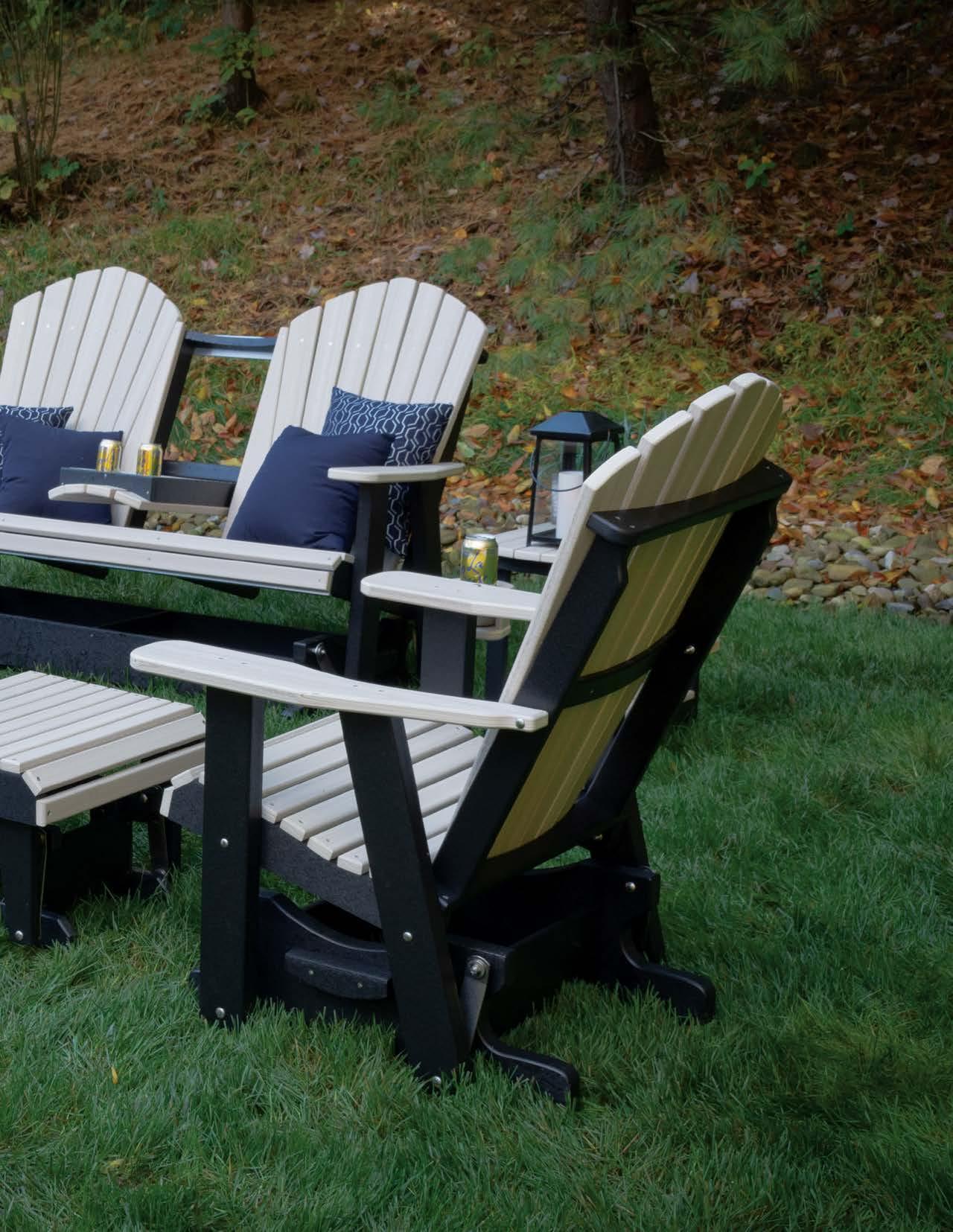 The Basics Collection by JDM Outdoors is made with a durable yet soft-to-the-touch poly lumber that comes from recycled milk jugs! This furniture will not splinter, rot or peel, and never requires sealing or paint. Our durable poly lumber is faderesistant and won’t crack or rot –even in the hottest and coldest temperatures. And the hardware fasteners we use are made of 316 stainless steel. Weather resistant, poly furniture is not affected by the elements; it can be left outdoors all year long.