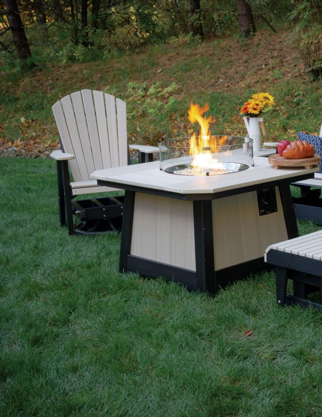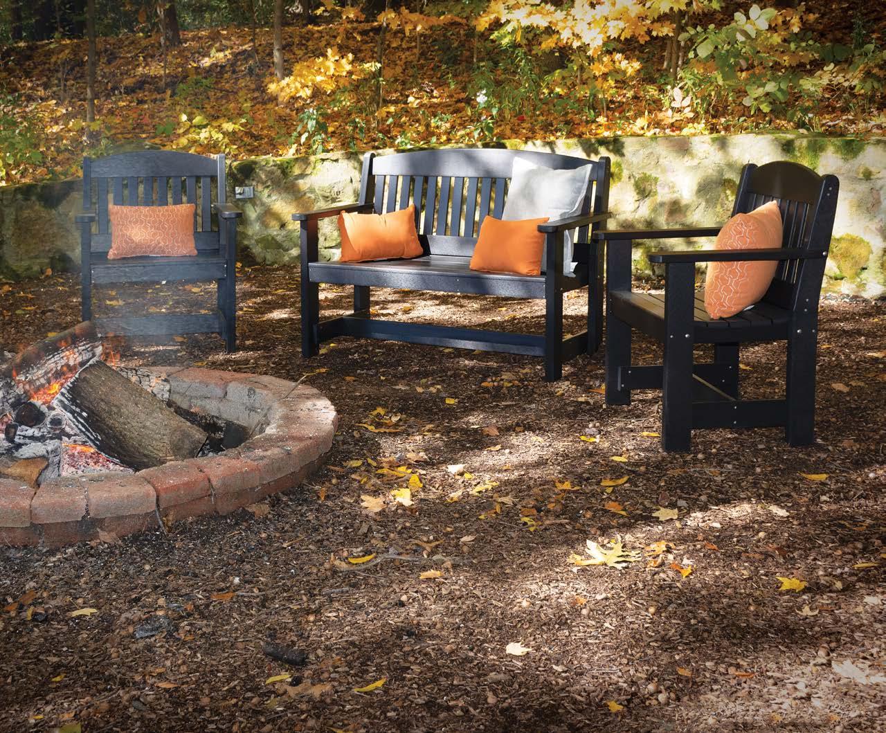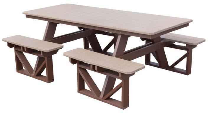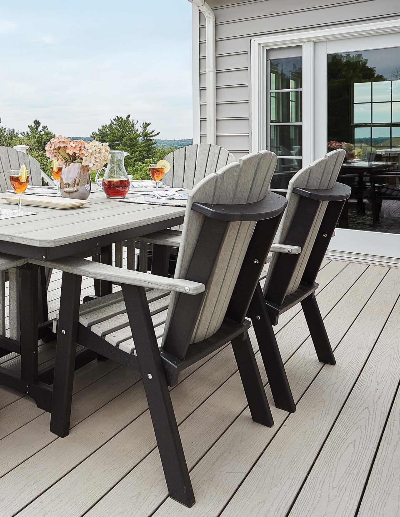 The Basics Collection by JDM Outdoors is made with a durable yet soft-to-the-touch poly lumber that comes from recycled milk jugs! This furniture will not splinter, rot or peel, and never requires sealing or paint. Our durable poly lumber is faderesistant and won’t crack or rot –even in the hottest and coldest temperatures. And the hardware fasteners we use are made of 316 stainless steel. Weather resistant, poly furniture is not affected by the elements; it can be left outdoors all year long.